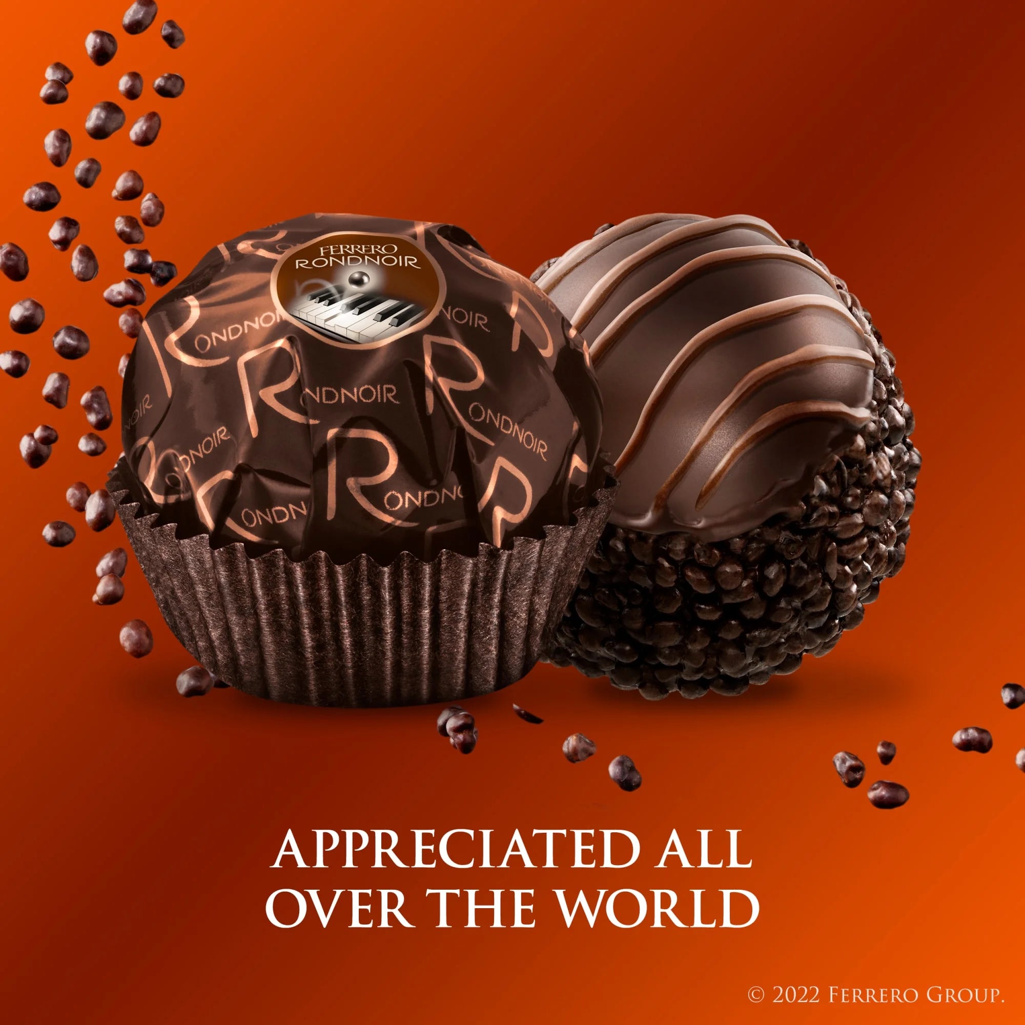 Whether you're giving it as a gift or sharing it with others, Ferrero Rondnoir gourmet dark chocolate is perfect for celebrating the moment with the people who mean the most to you. Ferrero Rondnoir, a dark chocolate pearl surrounded by creamy chocolate filling within a delicate, crisp wafer and covered with crunchy dark chocolate morsels. Since the 1940s, Ferrero has delighted consumers with premium, one-of-a-kind chocolate treats. What began as a local pasticceria in Italy’s Piemonte region is now one of the world’s most popular confectioners, satisfying cravings in over 100 countries worldwide. Thanks to a commitment to quality, freshness and a unique taste experience, Ferrero continues to delight chocolate lovers all over the world.