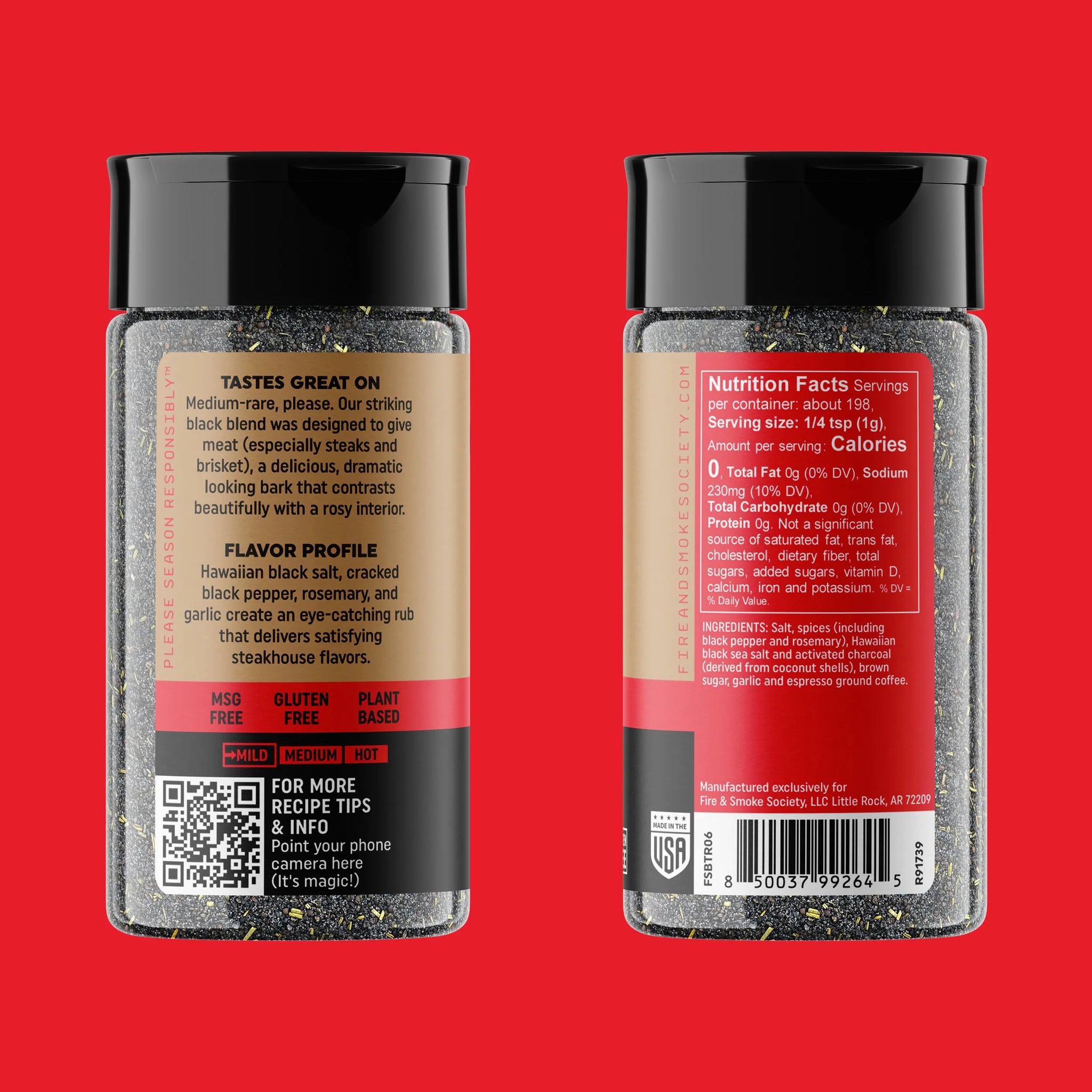 Indulge in the ultimate grilling experience with our beef rubs for steak, made from the perfect blend of black salt, cracked peppercorns, and garlic. Elevate your favorite cuts of meat, from juicy ribeye to succulent brisket, lamb, pork, and game, with our premium beef seasonings and rubs. Our beef seasoning salt is not only visually striking but also packs a powerful flavor profile that is sure to please even the most discerning palate. The combination of Hawaiian black salt, cracked black pepper, rosemary, and garlic creates a bold and robust steakhouse taste that is both satisfying and delicious. In addition to the classic beef steak seasoning, our BBQ rub for steak meat is perfect for those who want to add a touch of gourmet to their grilling. The unique blend of espresso ground coffee, black salt, and dehydrated garlic delivers a rich and complex flavor that is perfect for beef roast seasoning or a beef rib rub. Whether you are a seasoned pitmaster or a grilling enthusiast, our dry rubs for smoking and grilling are perfect for adding depth and complexity to your barbecue grilling. Our BBQ rub seasoning blend is perfect for both indoor and outdoor cooking, and our BBQ rubs and spices for grilling are ideal for any occasion. Our meat seasonings and rubs are MSG-free, gluten-free, and non-GMO, ensuring that you are getting the best possible ingredients for your culinary creations. So, fire up your grill and experience the mouthwatering flavor of our meat seasonings and rubs, perfect for any meat lover looking to take their grilling game to the next level.