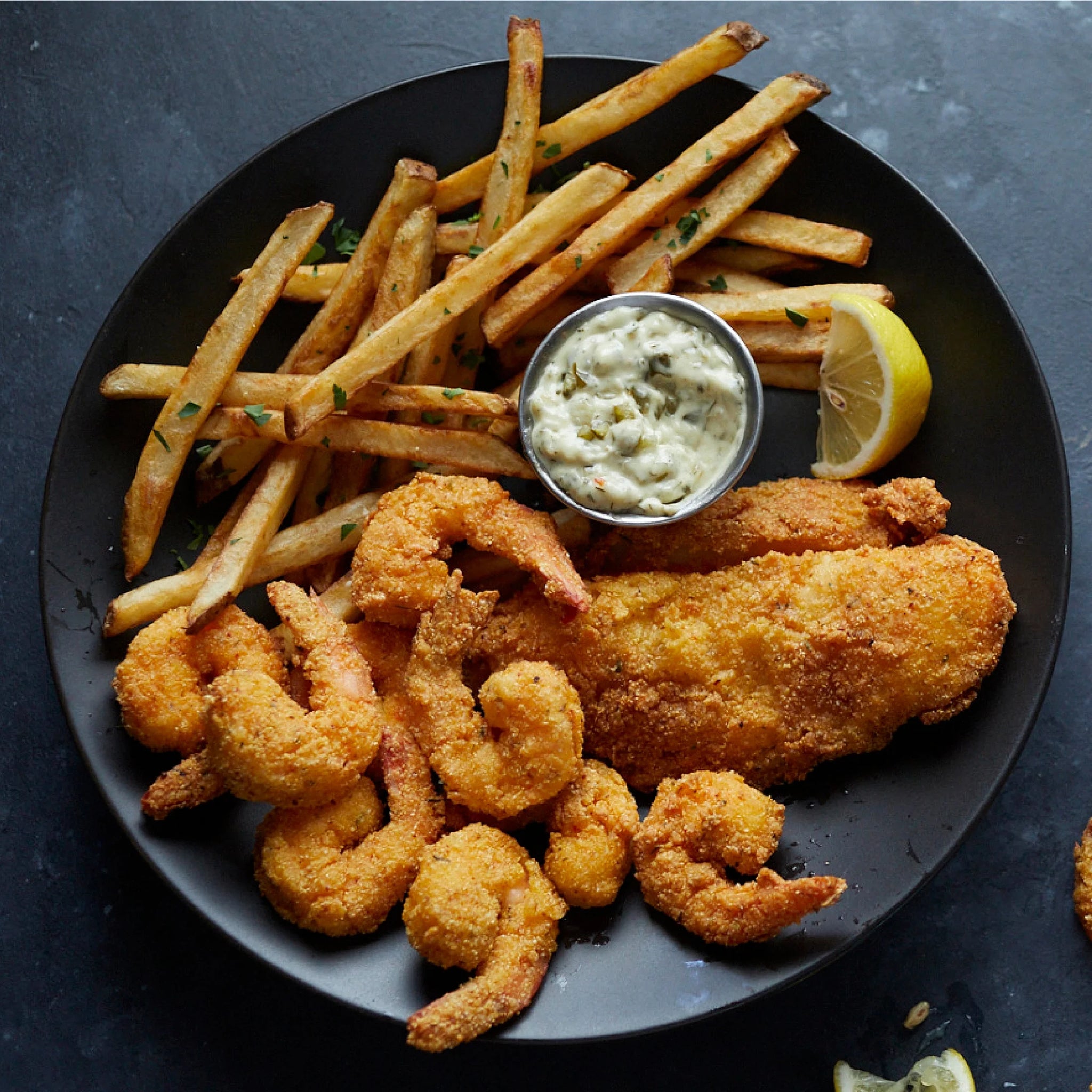 - This fish fry seasoning mix is perfect for gulf shrimp, fish frys, onion rings and even oysters. Did Someone Say Po Boy Night? Our easy to use fry mix can be prepared in just 10 minutes.