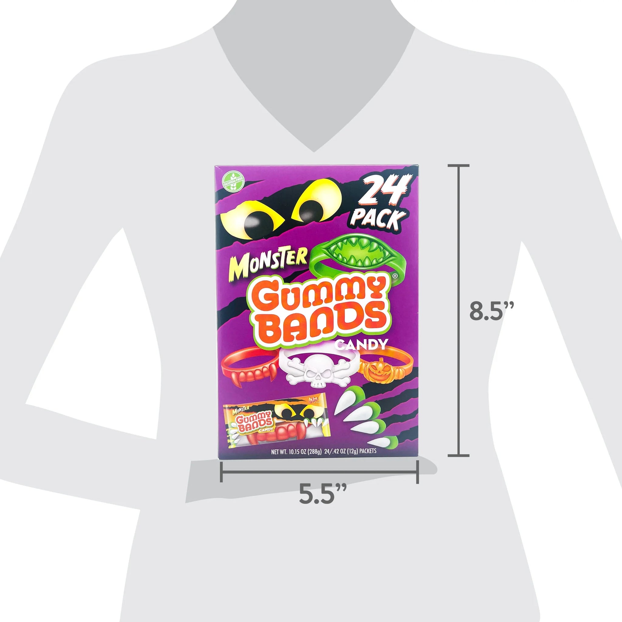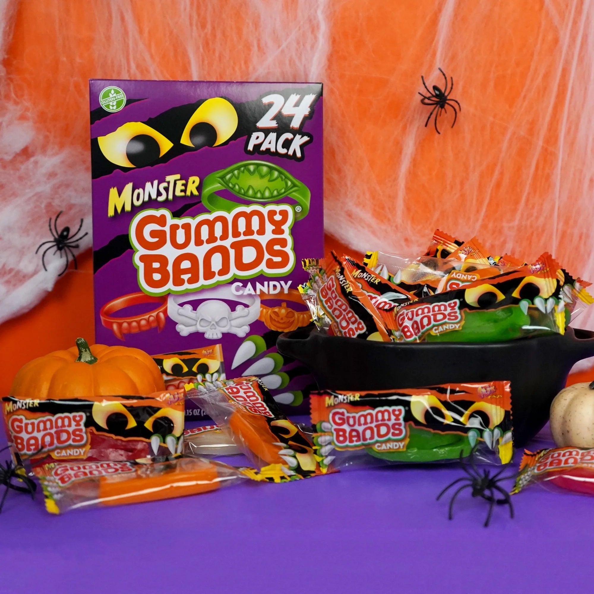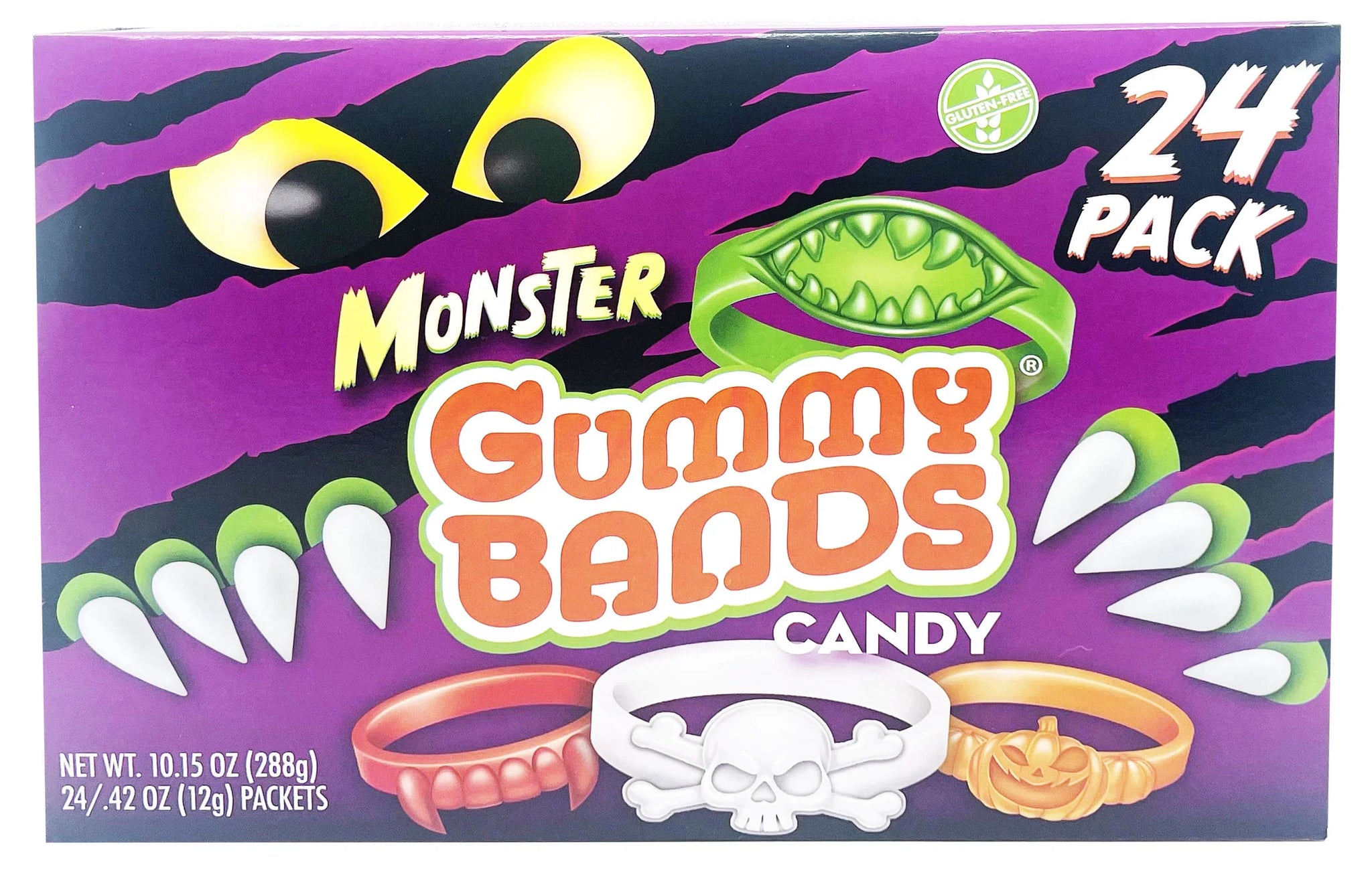 Unwrap fun with Flix Monster Gummy Bands! This 24-count box features individually wrapped gummy candy bands for a bold, fruity flavor and a soft, chewy texture. Perfect for kids’ parties, school treats, or Halloween giveaways Each gummy is wrapped for freshness and safety. The gummies come packed in a sturdy cardboard display box that’s great for classrooms, candy stations, or grab-and-go snacking.
