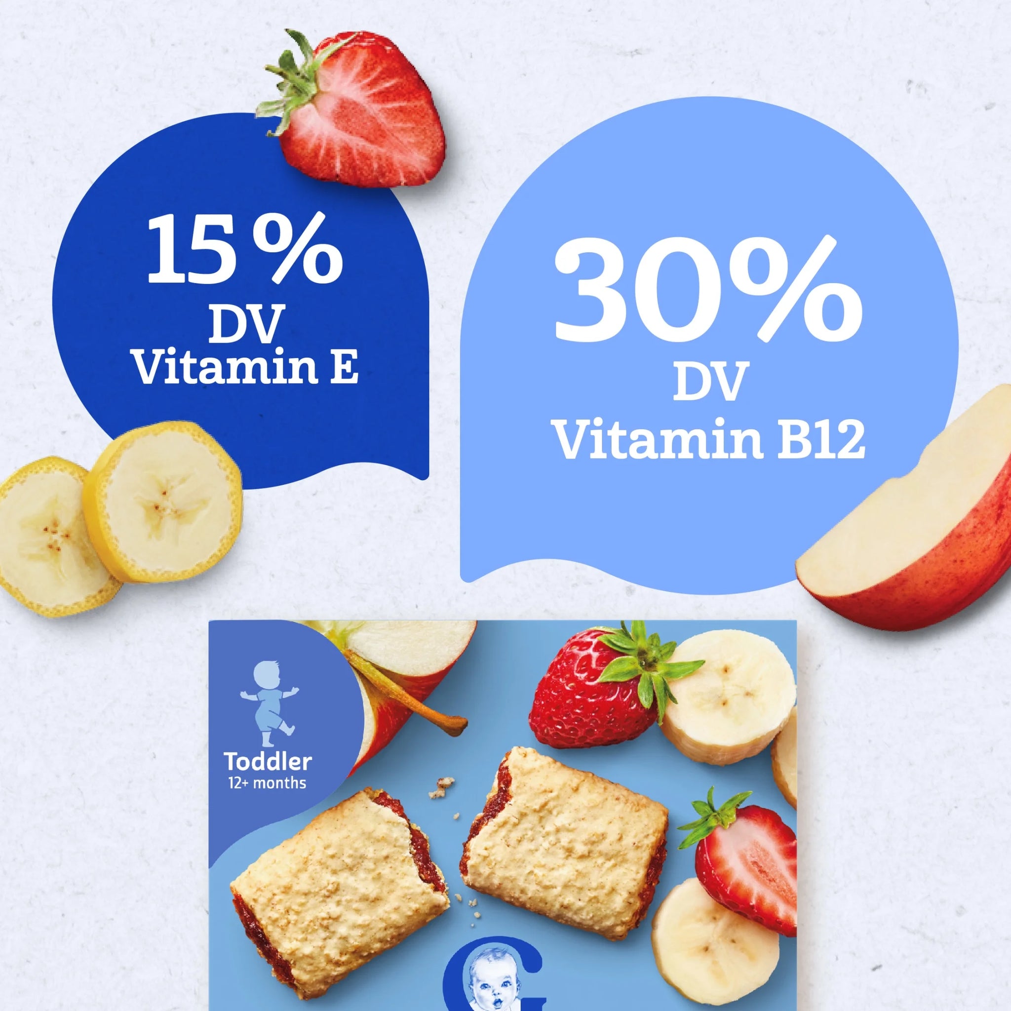 Make snack-time fun with snacks your child will happily munch on. Gerber Soft Baked Grain Bars are made to fit into your little one’s busy day, whether they’re at home or on the move. Gerber toddler snacks are the perfect choice for parents seeking both quality and convenience. Baked with real fruit and wholesome ingredients, these strawberry banana bars are carefully designed with your little one in mind. Gerber’s dedication to quality has been and always will be our highest priority. We're committed to being your partner in parenthood with quality ingredients and expert guidance. Gerber snacks for toddlers are a trusted choice for countless families. Contains allergens: WHEAT.