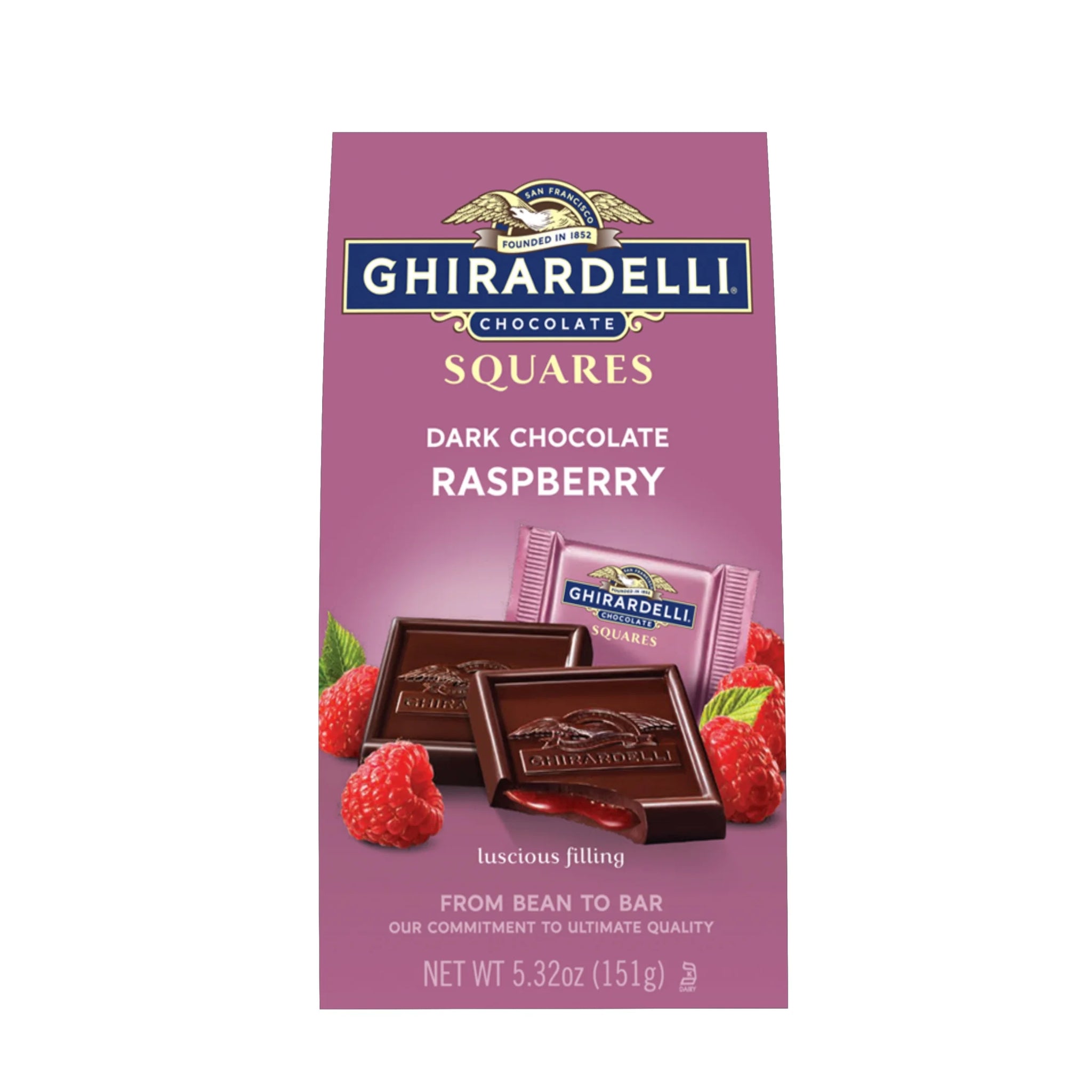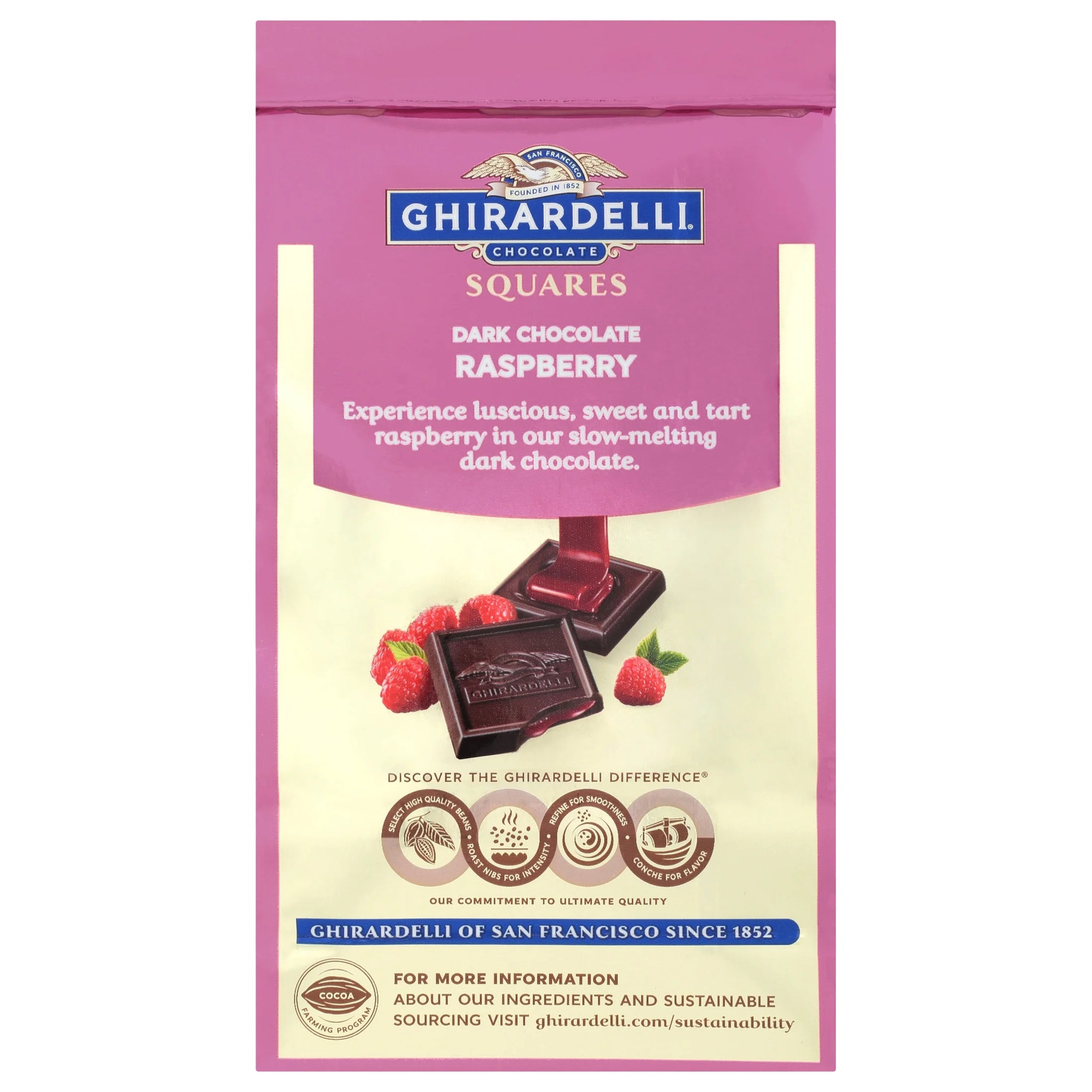 - One (1) 5.32 oz bag of GHIRARDELLI Dark Chocolate Raspberry squares