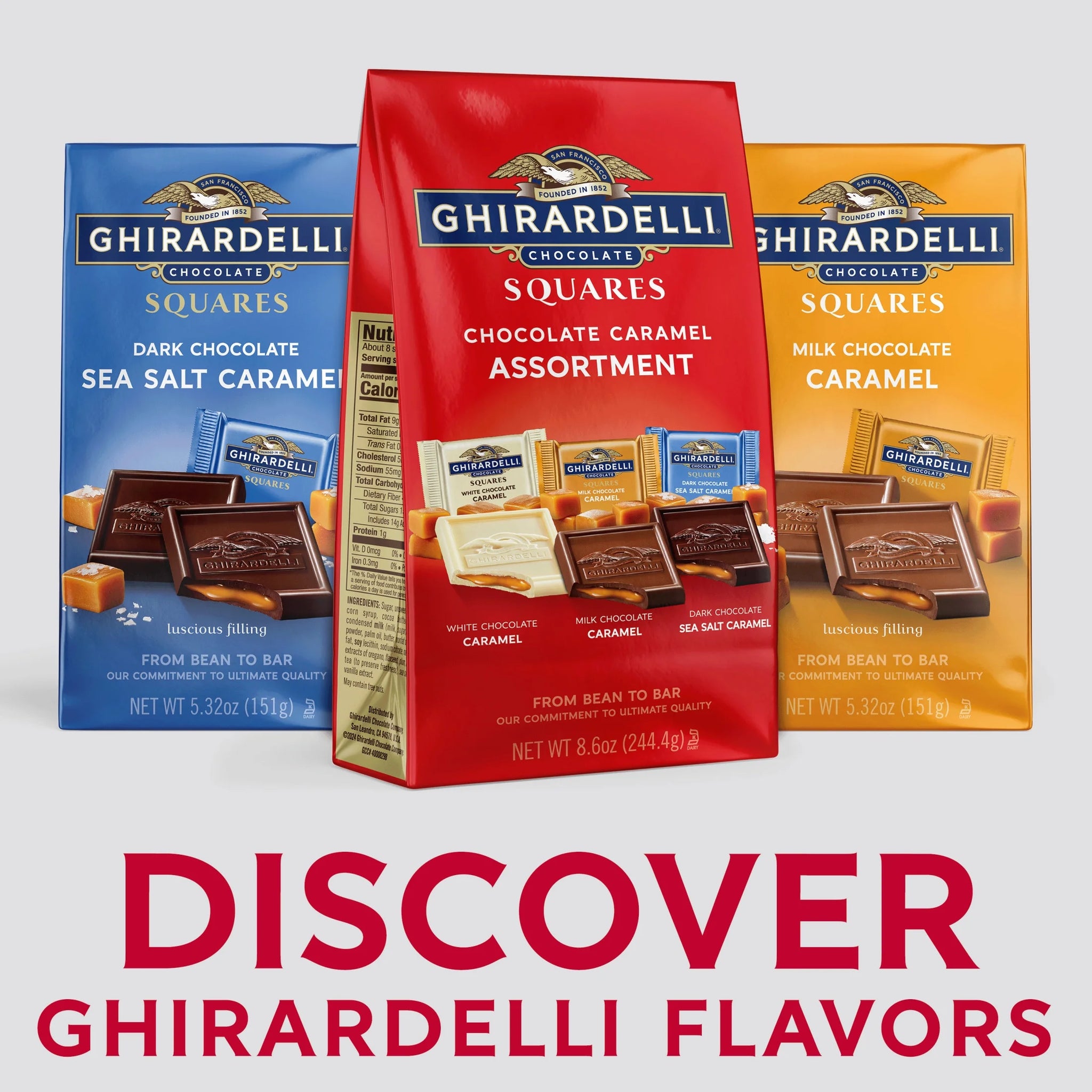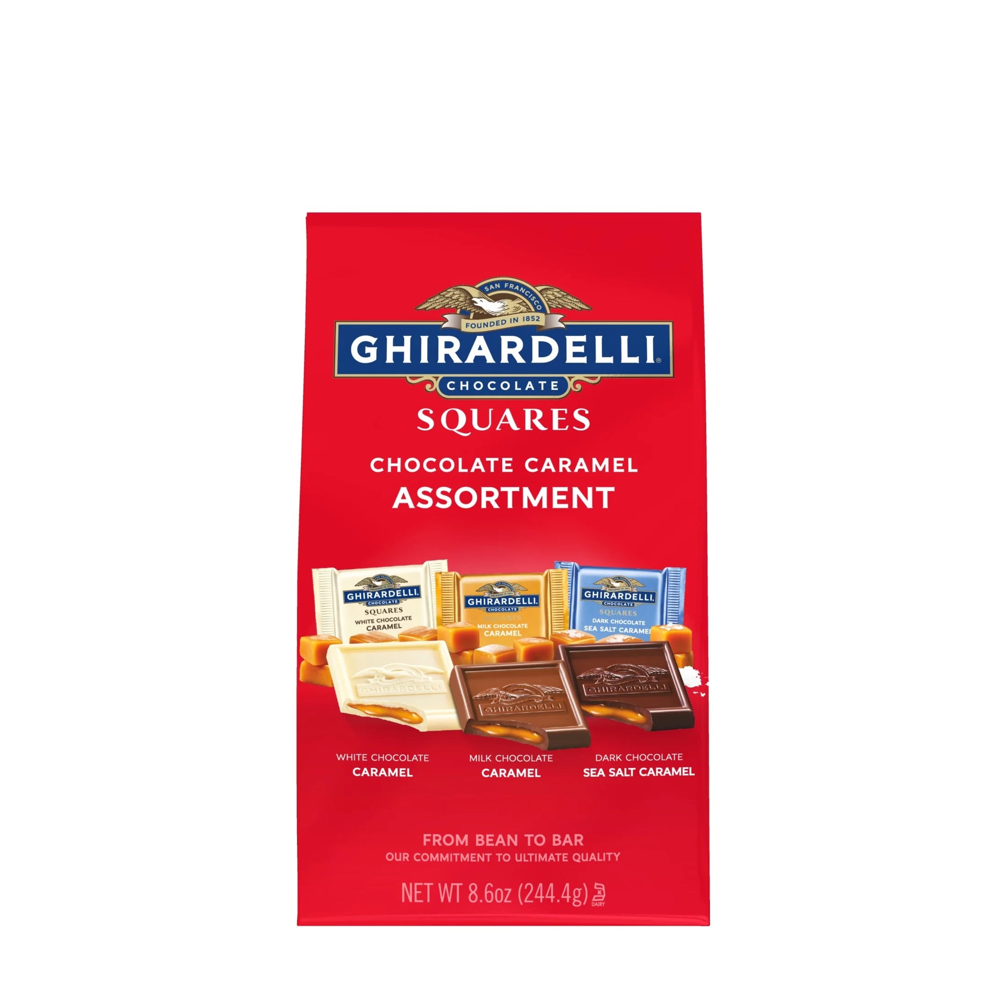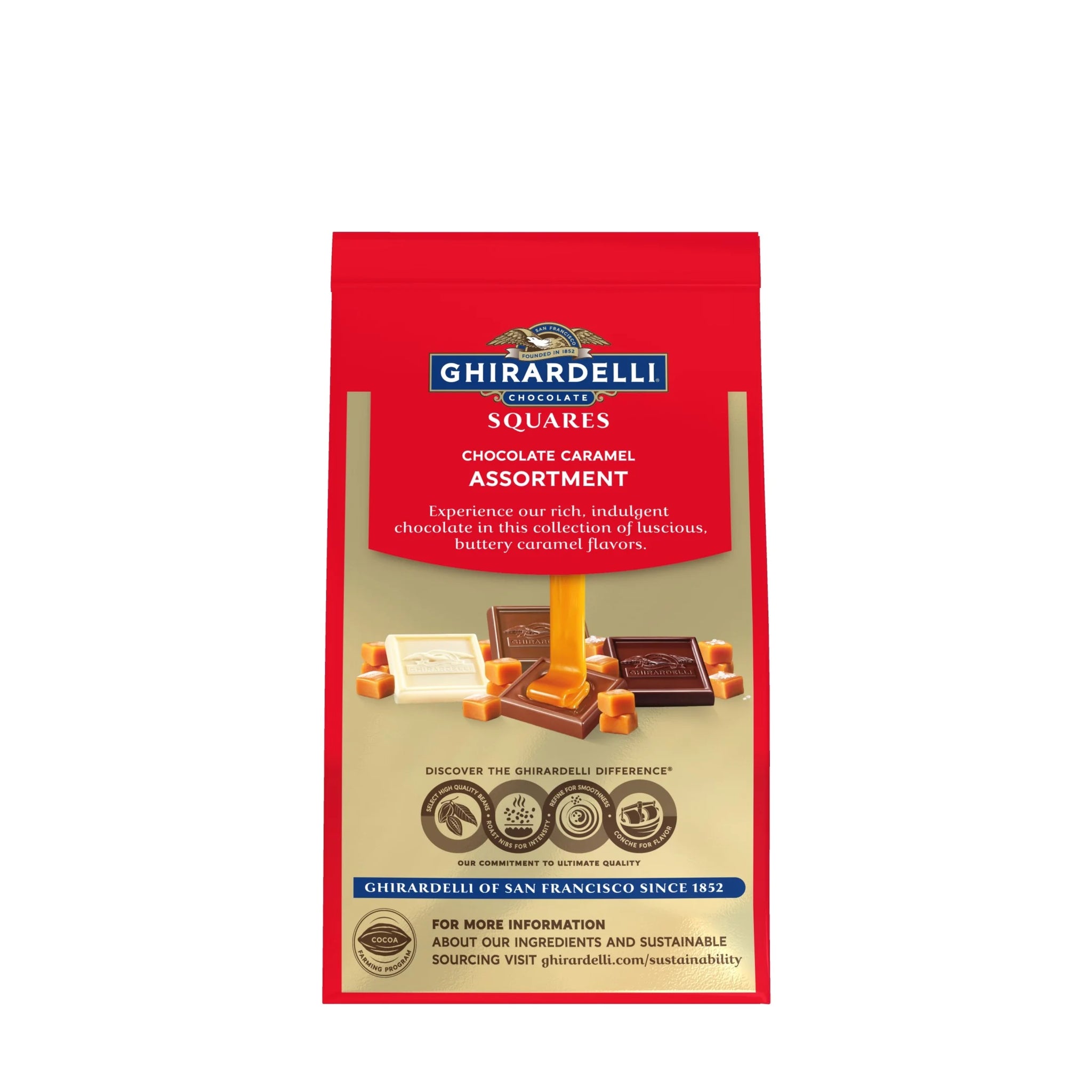 Experience luscious, buttery caramel flavors in this assortment of our rich, indulgent chocolate. This bag of individually wrapped candy SQUARES is perfect for gifting, entertaining and personal enjoyment. There's a chocolate in this collection for everyone, whether you crave rich, indulgent milk chocolate, slow-melting dark chocolate or decadent white chocolate. A variety of flavors that caramel lovers will crave! GHIRARDELLI chocolate SQUARES are individually wrapped, making them ideal to tuck in purses, bags and desk drawers for an afternoon pick-me-up. Committed to ultimate quality from bean to bar, GHIRARDELLI chocolate is crafted with care using high quality ingredients for a smooth, delectable treat. GHIRARDELLI Makes Life a Bite Better.