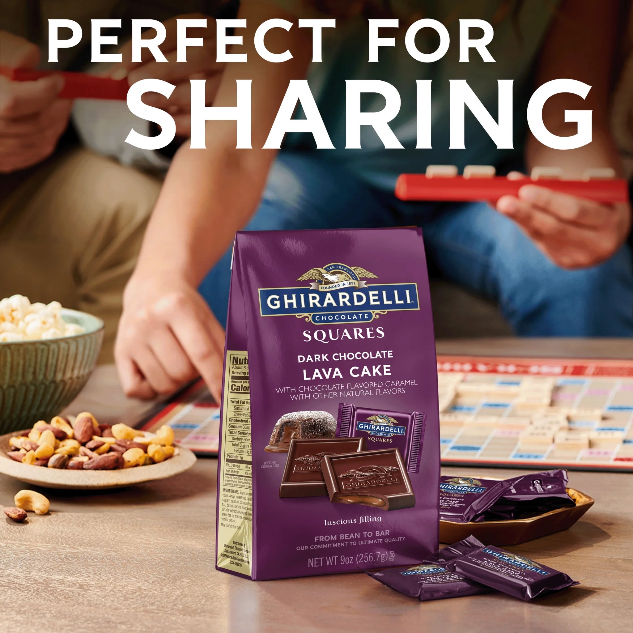 Unwrap GHIRARDELLI Dark Chocolate Lava Cake SQUARES for moments of pure indulgence. GHIRARDELLI SQUARES bring a touch of sweetness to your day, whether savored on their own or paired with your favorite treat. Let each bite of rich, slow-melting dark chocolate and luscious chocolate-flavored caramel filling transport you to dessert heaven. Share the sweet moments of joy and delight with someone close to your heart when you give these chocolate candy SQUARES as a gift. Crafted with premium ingredients, including high-quality cocoa beans, each individually wrapped square is perfect for savoring or sharing. GHIRARDELLI Makes Life a Bite Better.