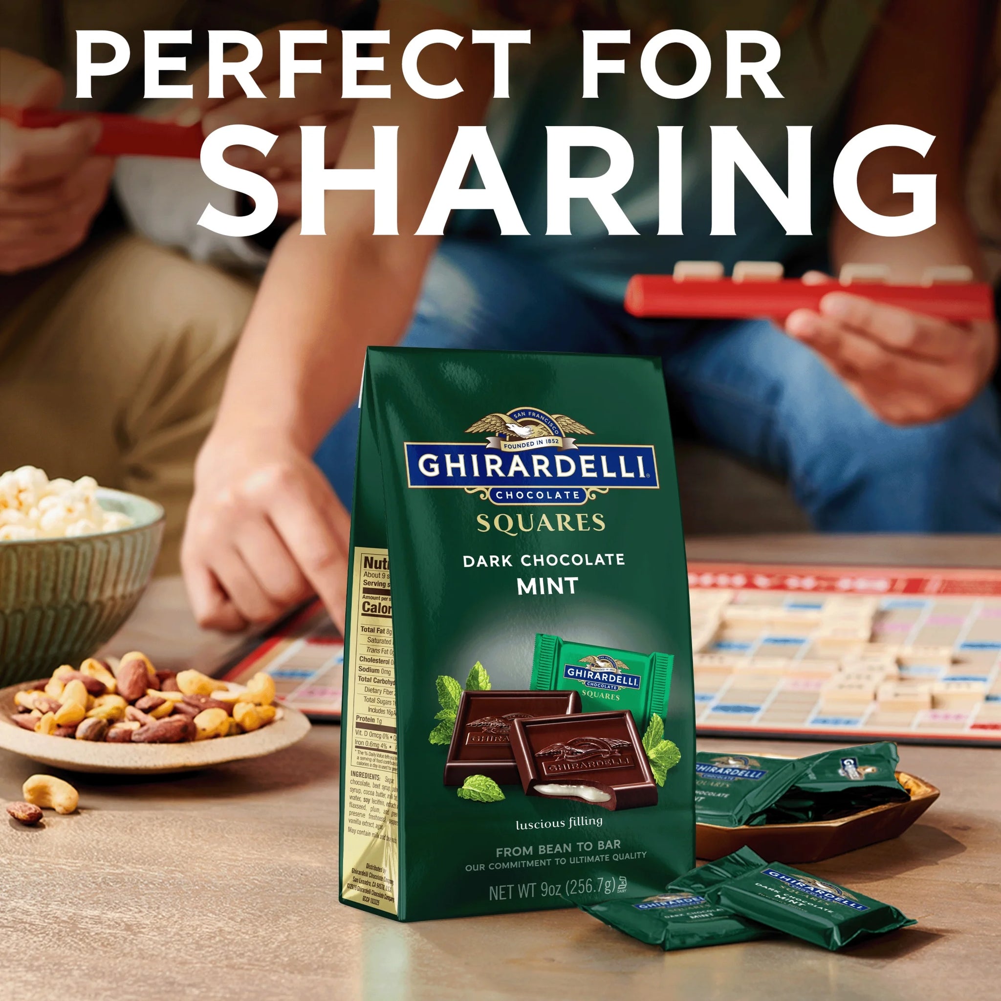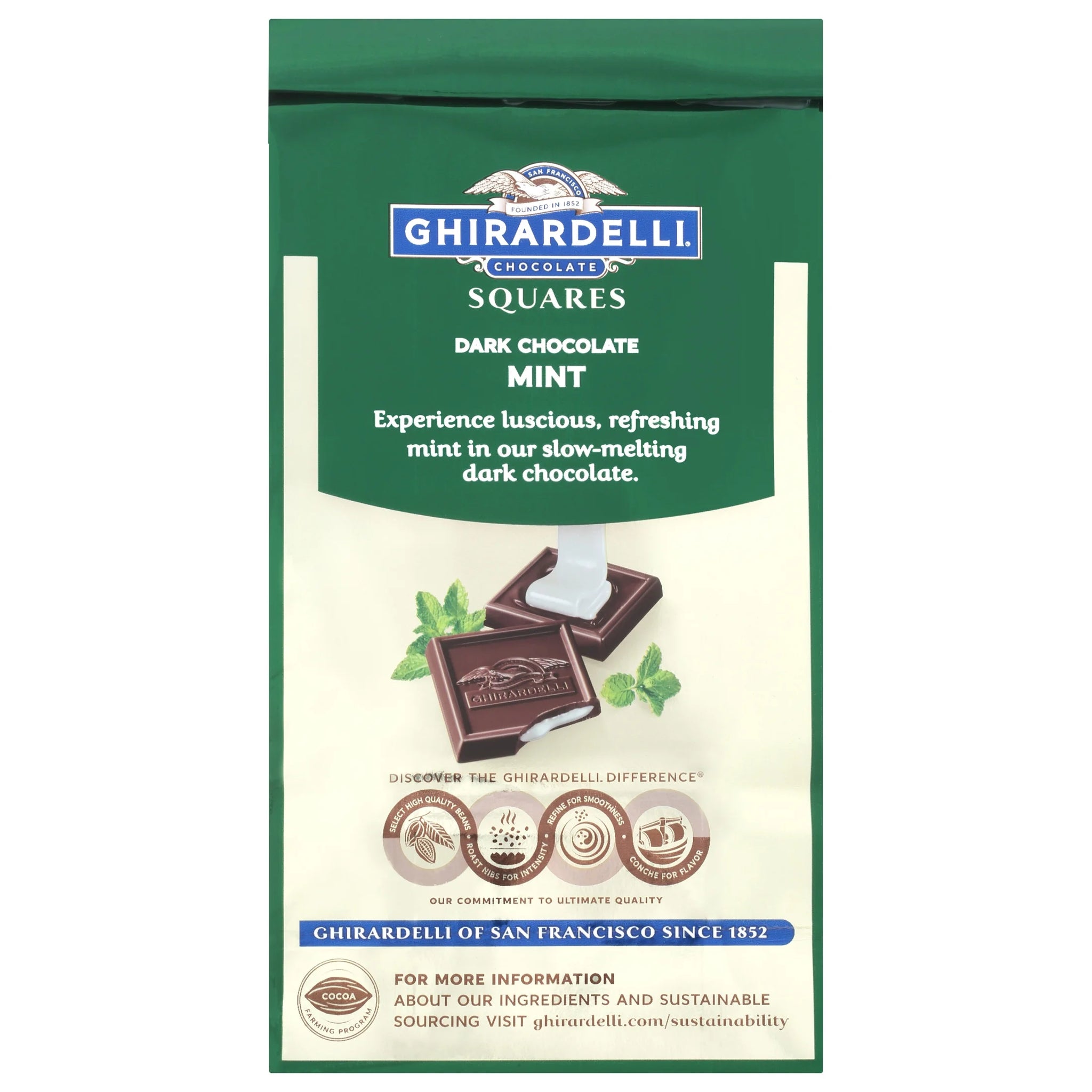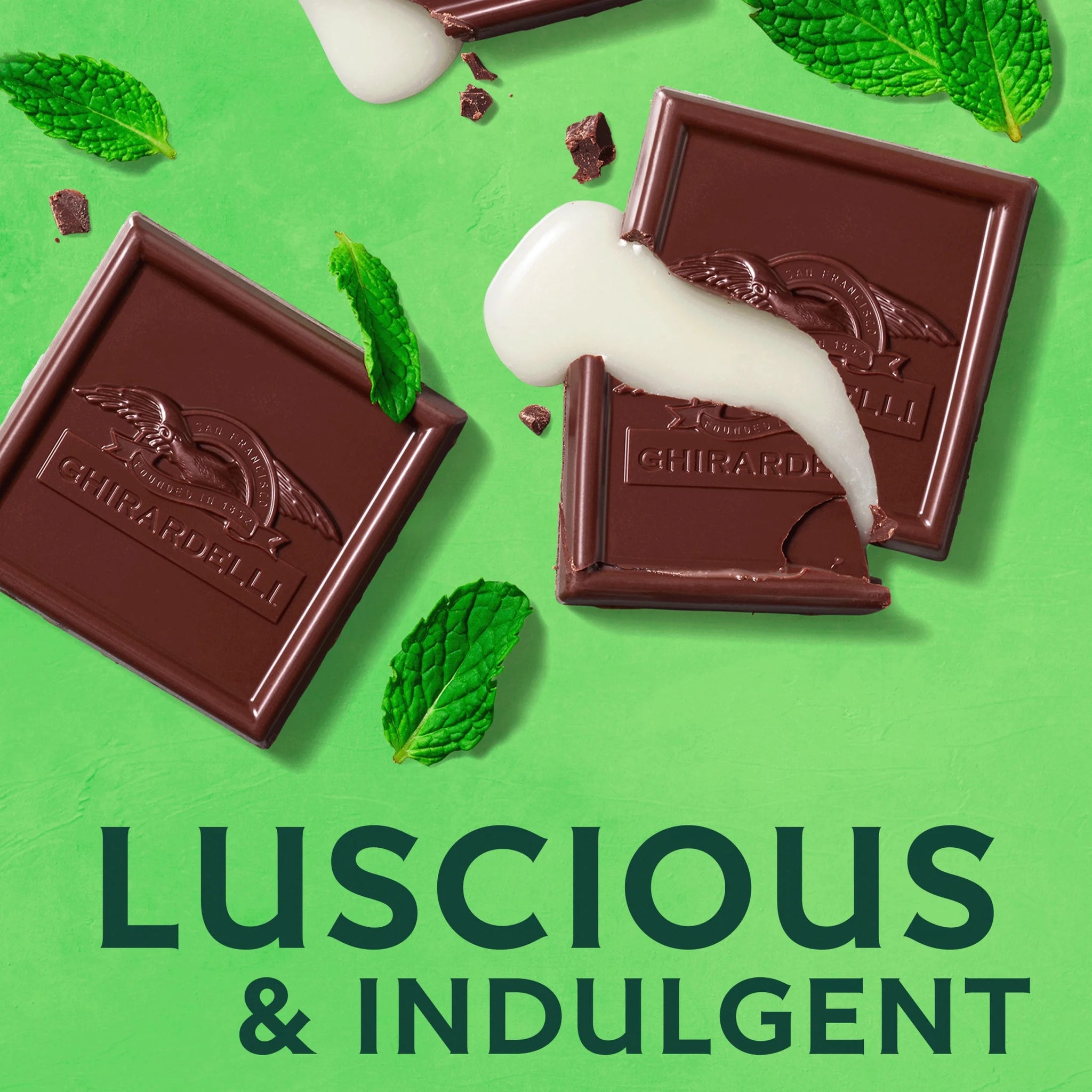 GHIRARDELLI Dark Chocolate Mint squares are refreshing and decadent. The perfect after-dinner treat or special gift, these mint chocolate squares make any part of your day more delicious. Each dark chocolate square features tantalizingly refreshing mint filling surrounded by rich, slow-melting dark chocolate. These individually wrapped chocolate squares are the perfect personal size indulgence for home, work or on the go. GHIRARDELLI chocolate is certified kosher and crafted with care using high quality ingredients for a smooth, slow-melting treat. GHIRARDELLI Makes Life a Bite Better. In addition to Dark Chocolate Mint, GHIRARDELLI squares are in other delectable flavors, including Dark Chocolate Sea Salt Caramel, Dark Chocolate Raspberry and more. All GHIRARDELLI chocolate is sustainably sourced, ensuring the highest quality from bean to final product.