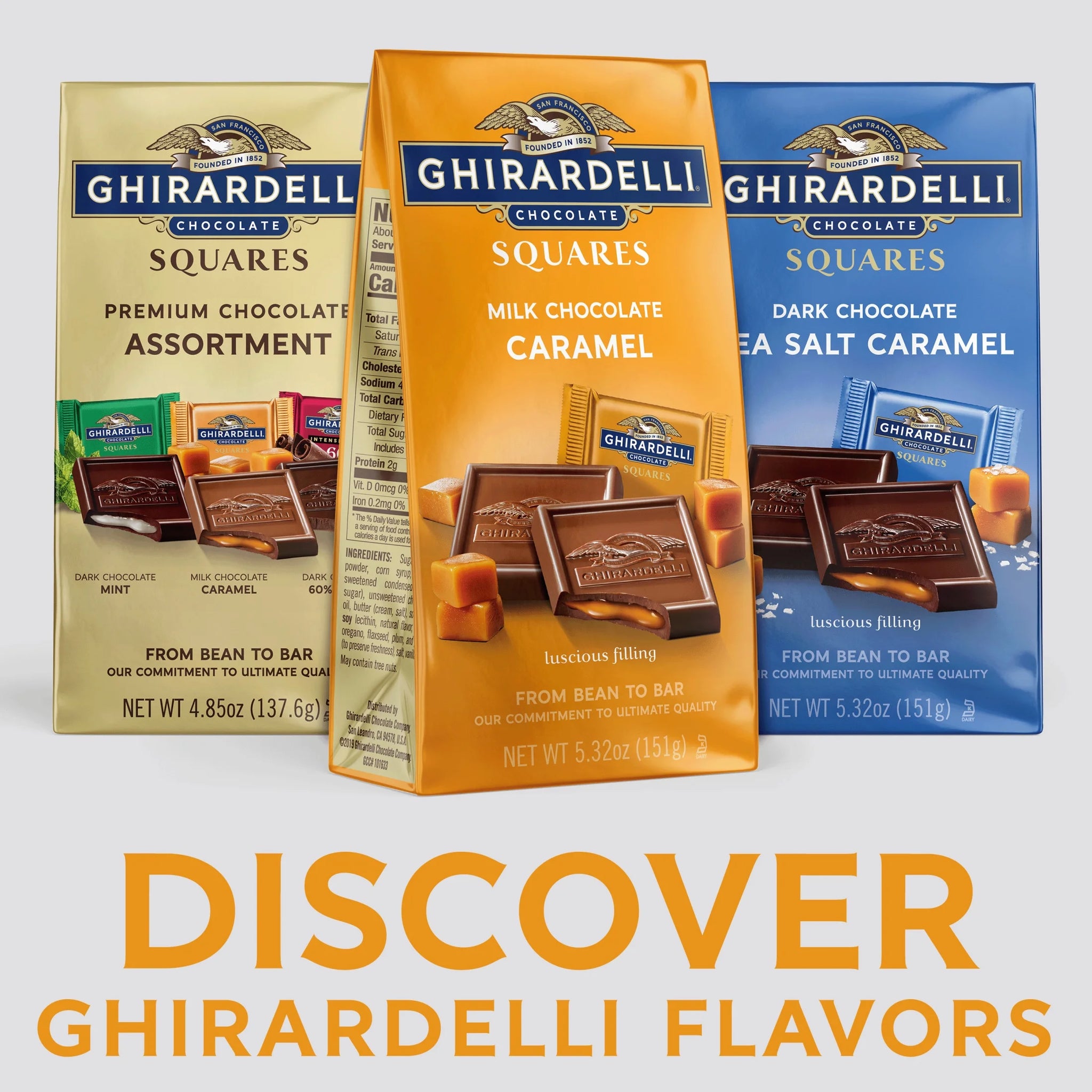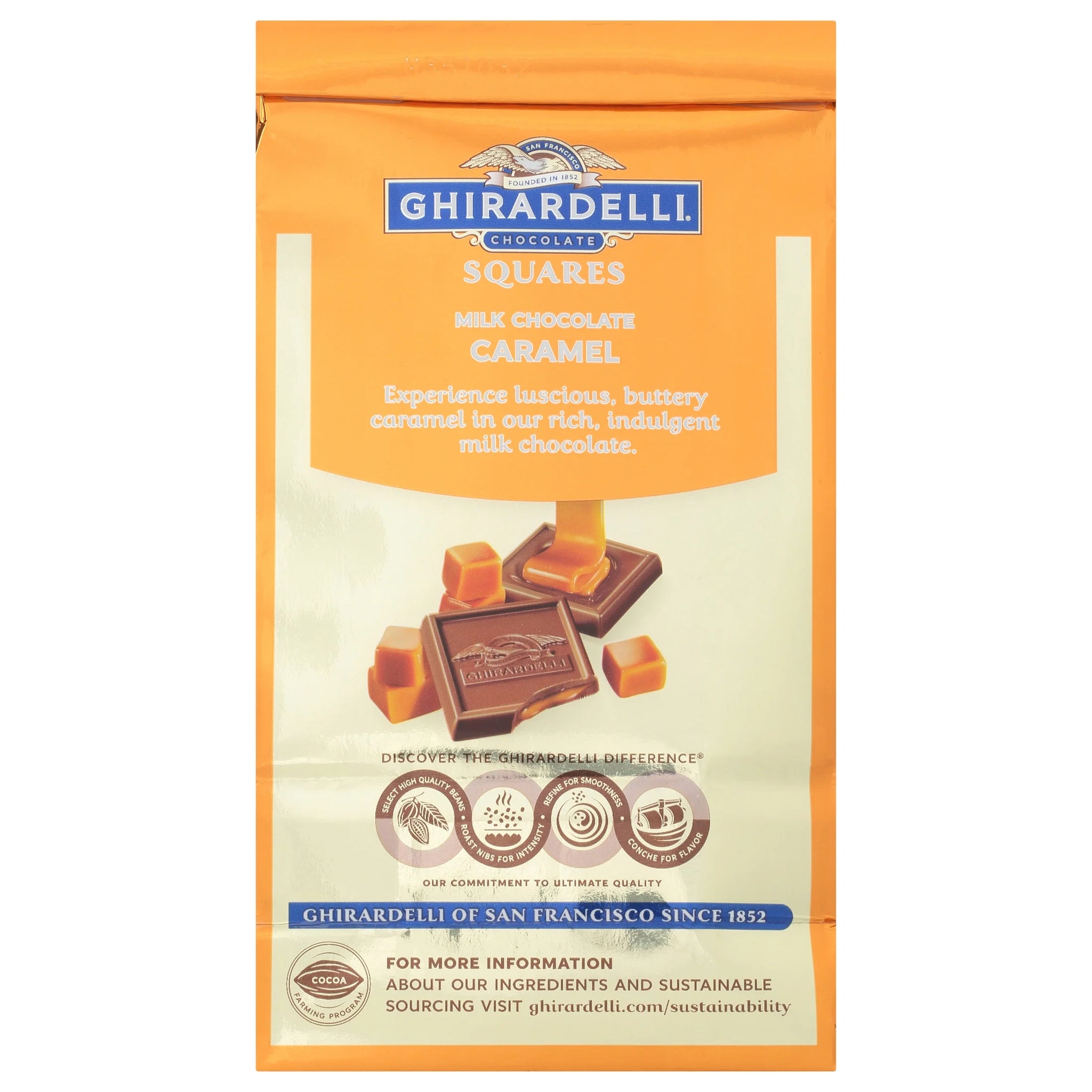 Unwrap Ghirardelli Milk Chocolate Squares with Caramel Filling for moments of luxurious indulgence. Ghirardelli Squares add a sweet touch to your day on their own and offer a delicious twist to s'mores and other desserts for something special. Share the sweet moments of joy and delight with someone close to your heart when you give these chocolate caramel candy squares as a gift. Luscious caramel fills the slow-melting, creamy milk chocolate for pure bliss in every square. Individually wrapped chocolate squares are easy to share or enjoy one at a time. Premium ingredients, including high quality cocoa beans, are part of the Ghirardelli difference: a commitment to ultimate quality from Bean to Bar. Ghirardelli Makes Life a Bite Better.