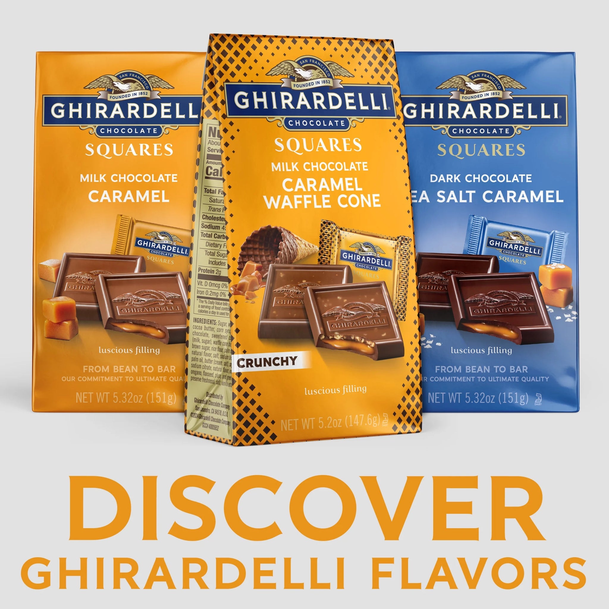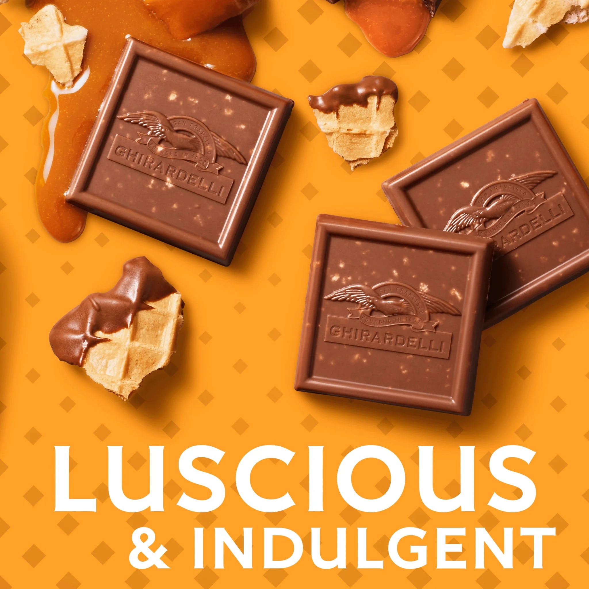 Unwrap GHIRARDELLI Milk Chocolate Caramel Waffle Cone Squares for moments of pure indulgence. GHIRARDELLI SQUARES add a sweet touch to your day on their own and offer a delicious twist to s'mores and other desserts for something special. Share the sweet moments of joy and delight with someone close to your heart when you give these chocolate caramel candy squares as a gift. Luscious, buttery caramel fills the rich milk chocolate with crunchy waffle cone pieces, for an indulgent treat with every square. Individually wrapped chocolate squares are easy to share or enjoy one at a time. Premium ingredients, including high quality cocoa beans, are part of the GHIRARDELLI difference: a commitment to ultimate quality from Bean to Bar. GHIRARDELLI Makes Life a Bite Better.