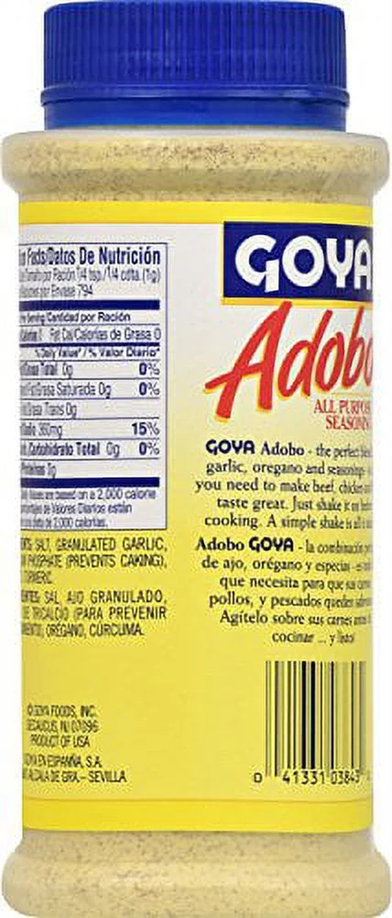 Goya brings authentic Latino cuisine to your kitchen. Goya Adobo All Purpose Seasoning, the perfect blend of garlic, oregano and seasonings, is all you need to make beef, chicken and fish taste great. Just shake it on before using. A simple shake is all it takes.