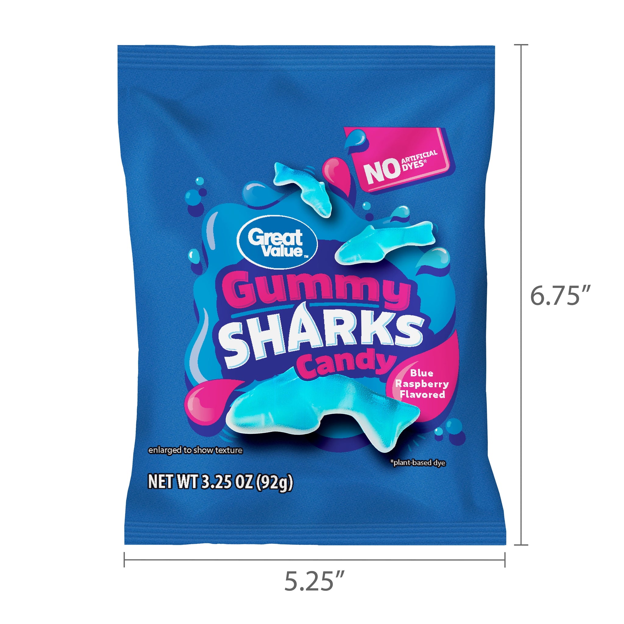 Searching for your new favorite candy? Look no further than Gummy Sharks. These gummy sharks have all the blue raspberry flavor you crave without artificial colors or flavors. It's a win-win! Perfect for snacking at home or on the go, treat yourself to these sharks any time of day. Grab a handful to have with your lunch or for a quick snack. They have zero grams of fat, cholesterol, and sodium, so you can enjoy this sweet treat guilt free. Kids and adults alike are sure to love the delicious flavor and chewy texture of Gummy Sharks.