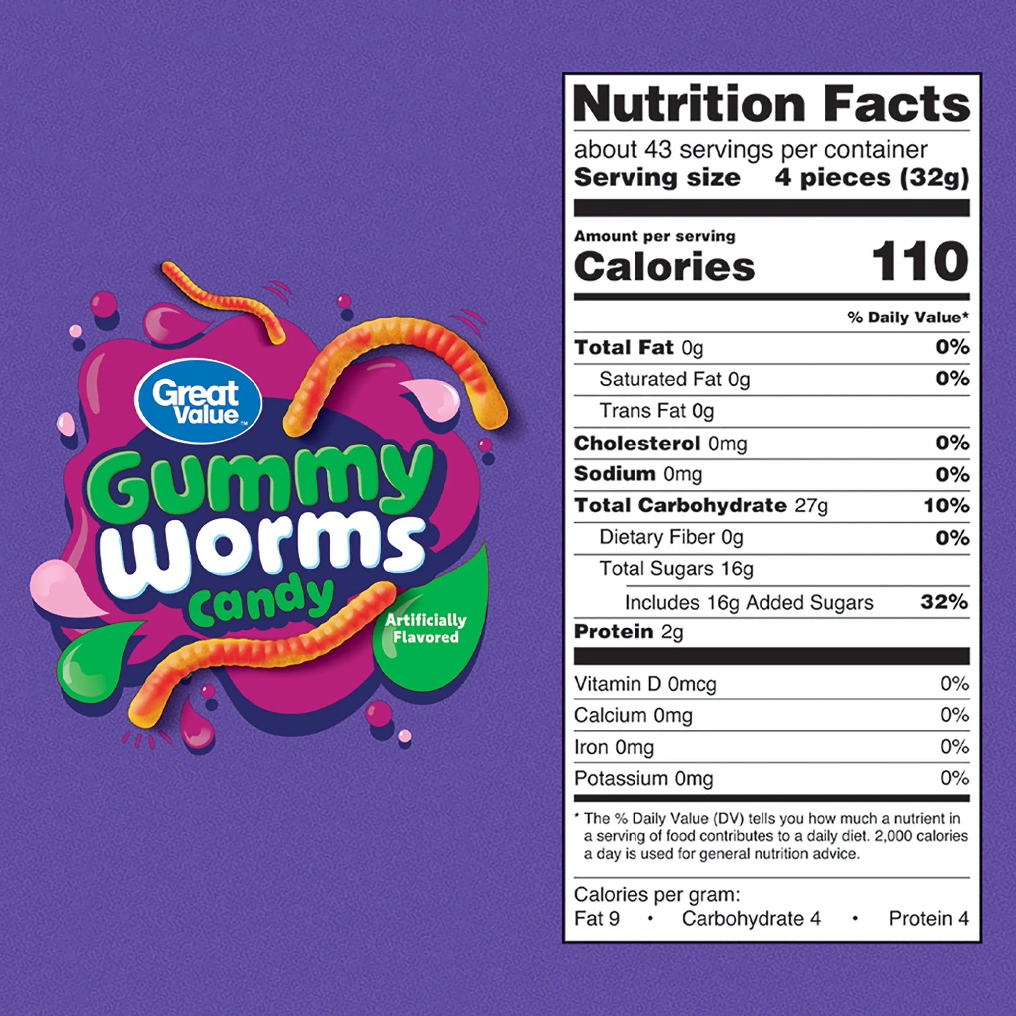 Gummy Worms Chewy Candy, 48 Oz Bag