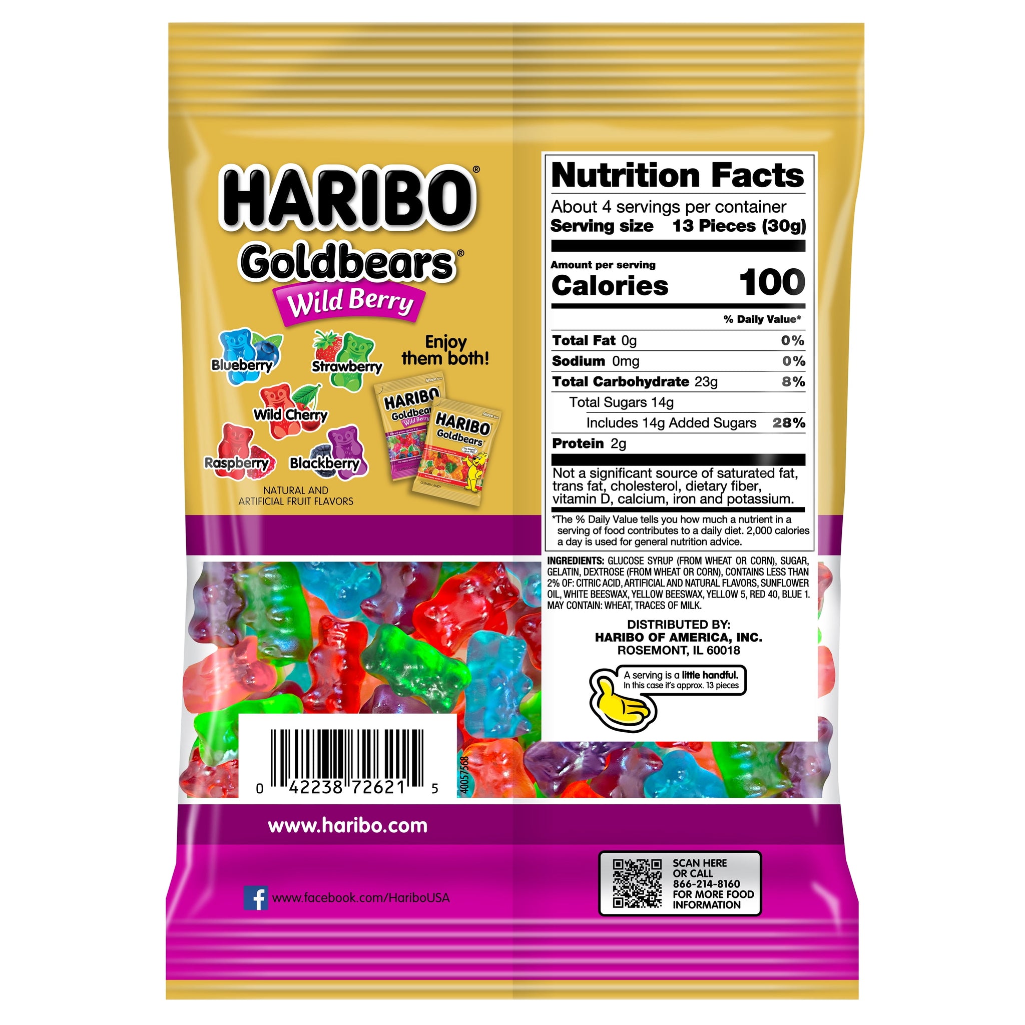Say hello to America's #1 Selling Gummi Bear! There’s no better companion than our original HARIBO® GOLDBEARS®, the delicious treat loved by young and old alike. HARIBO GOLDBEARS® have been the gummi candy gold standard worldwide for over 90 years. Every bag of Gold-bears Wild Berry contains five berry flavors including Blueberry, Wild Cherry, Strawberry, Raspberry and Wild Berry. Kids and grown-ups love it so, the happy world of HARIBO®