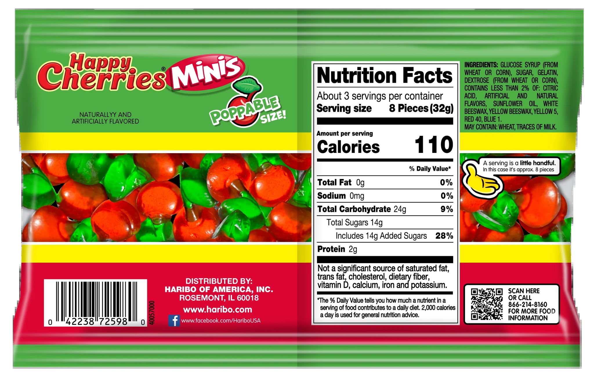 HARIBO Happy Cherries Minis Gummy Candy, 1 Regular 3.5oz Share Pack Happiness is just a bag away with HARIBO Happy Cherries! Every gummi is freshly picked and full of imagination. Their playful shape and intense fruity flavor are the perfect cherry on top of any day!