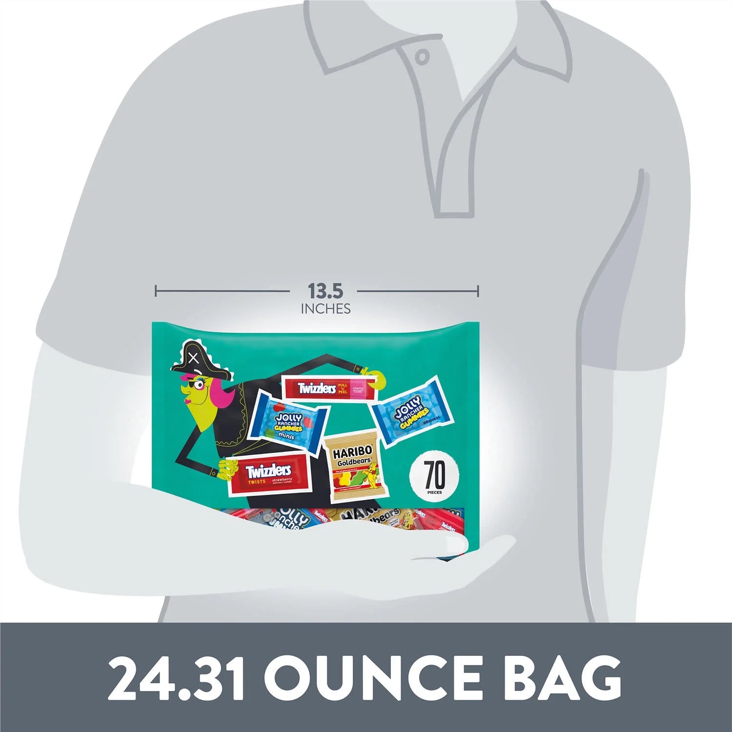 - Contains one (1) 24.31-ounce, 70-piece variety bag of HARIBO, JOLLY RANCHER and TWIZZLERS Assorted Fruit Flavored Candy