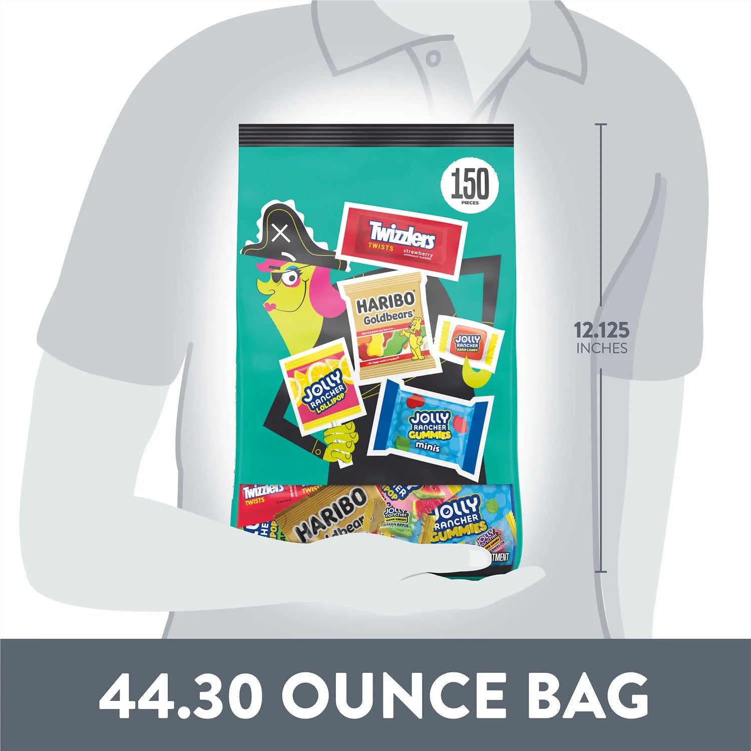 - Contains one (1) 44.30-ounce, 150-piece bulk variety bag of HARIBO, JOLLY RANCHER and TWIZZLERS Assorted Fruit Flavored Candy