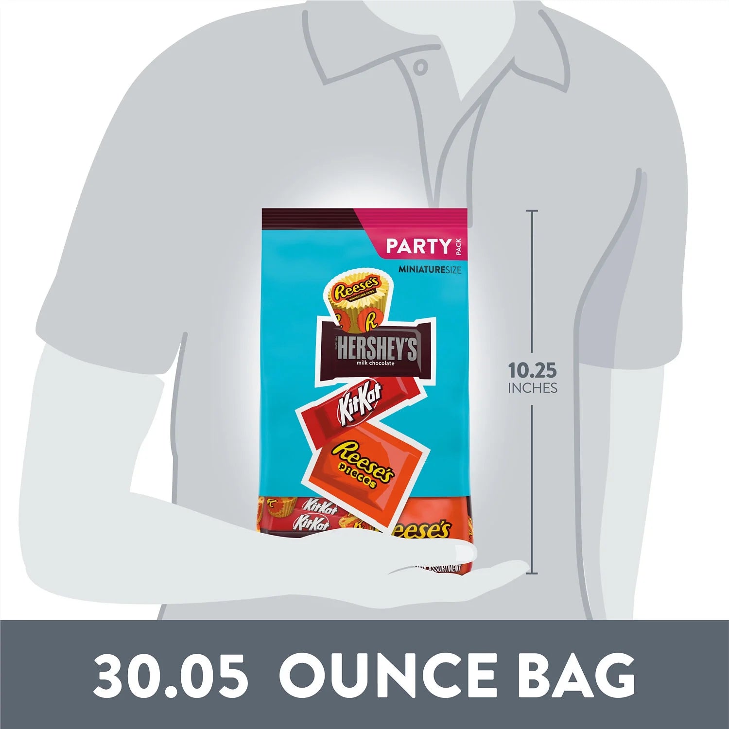 - Contains one (1) 30.05-ounce bulk party pack of HERSHEY'S, KIT KAT® and REESE'S Assorted Milk Chocolate and Peanut Butter Miniatures Candy