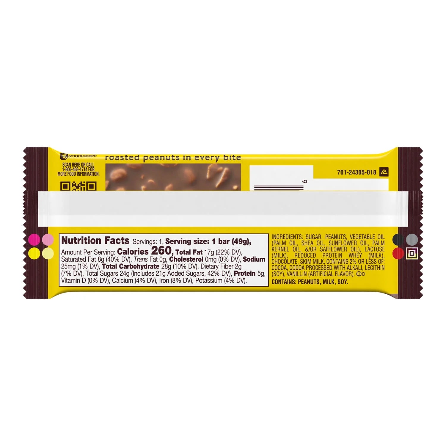 SUGAR, PEANUTS, VEGETABLE OIL (PALM OIL, SHEA OIL, SUNFLOWER OIL, PALM KERNEL OIL, &/OR SAFFLOWER OIL), LACTOSE (MILK), REDUCED PROTEIN WHEY (MILK), CHOCOLATE, SKIM MILK, CONTAINS 2% OR LESS OF: COCOA, COCOA PROCESSED WITH ALKALI, LECITHIN (SOY), VANILLIN (ARTIFICIAL FLAVOR)./div>