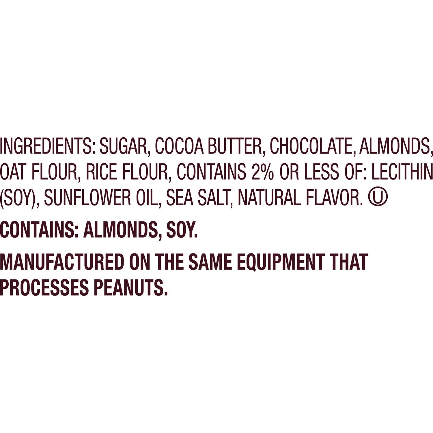 SUGAR, COCOA BUTTER, CHOCOLATE, ALMONDS, OAT FLOUR, RICE FLOUR, CONTAINS 2% OR LESS OF: LECITHIN (SOY), SUNFLOWER OIL, SEA SALT, NATURAL FLAVOR./div>