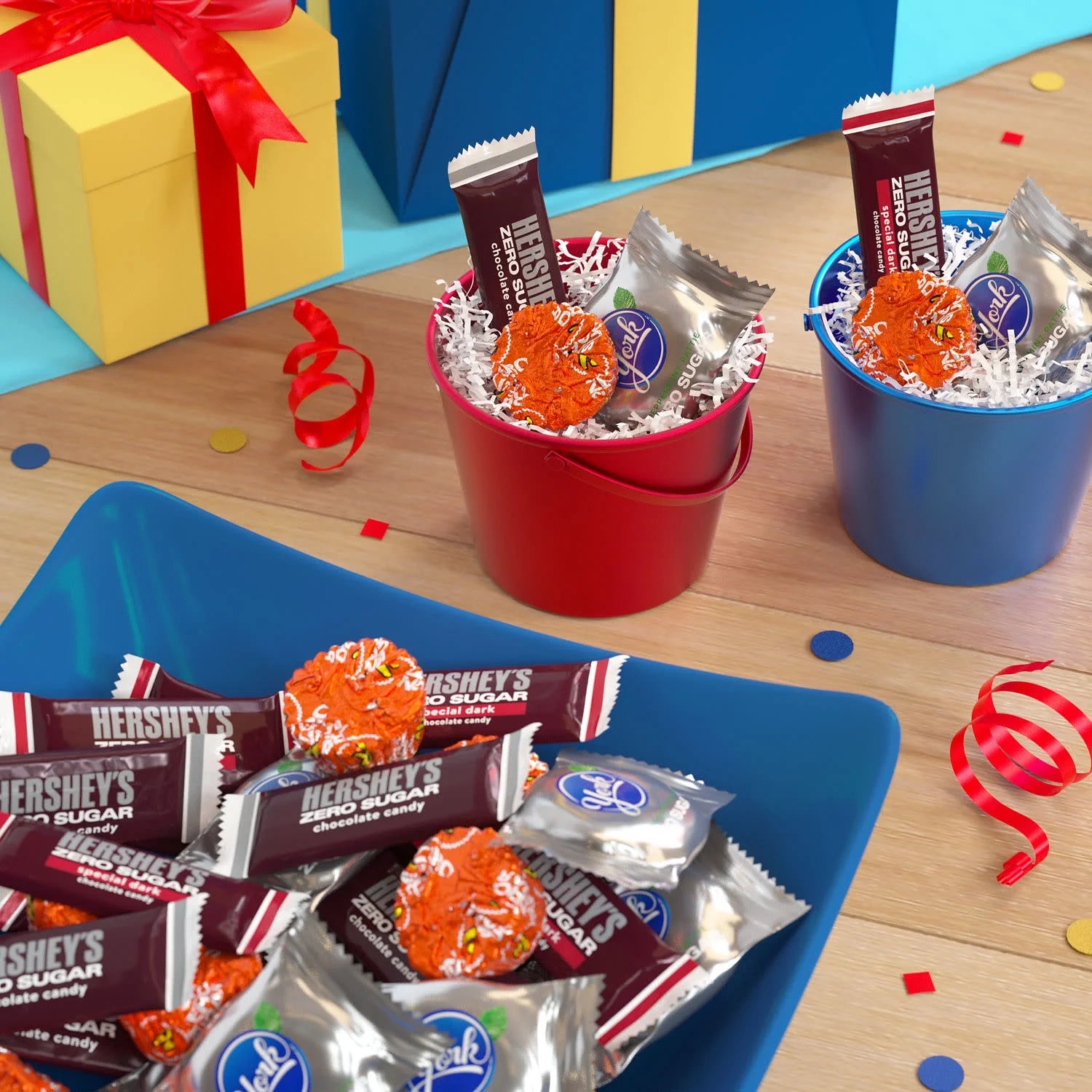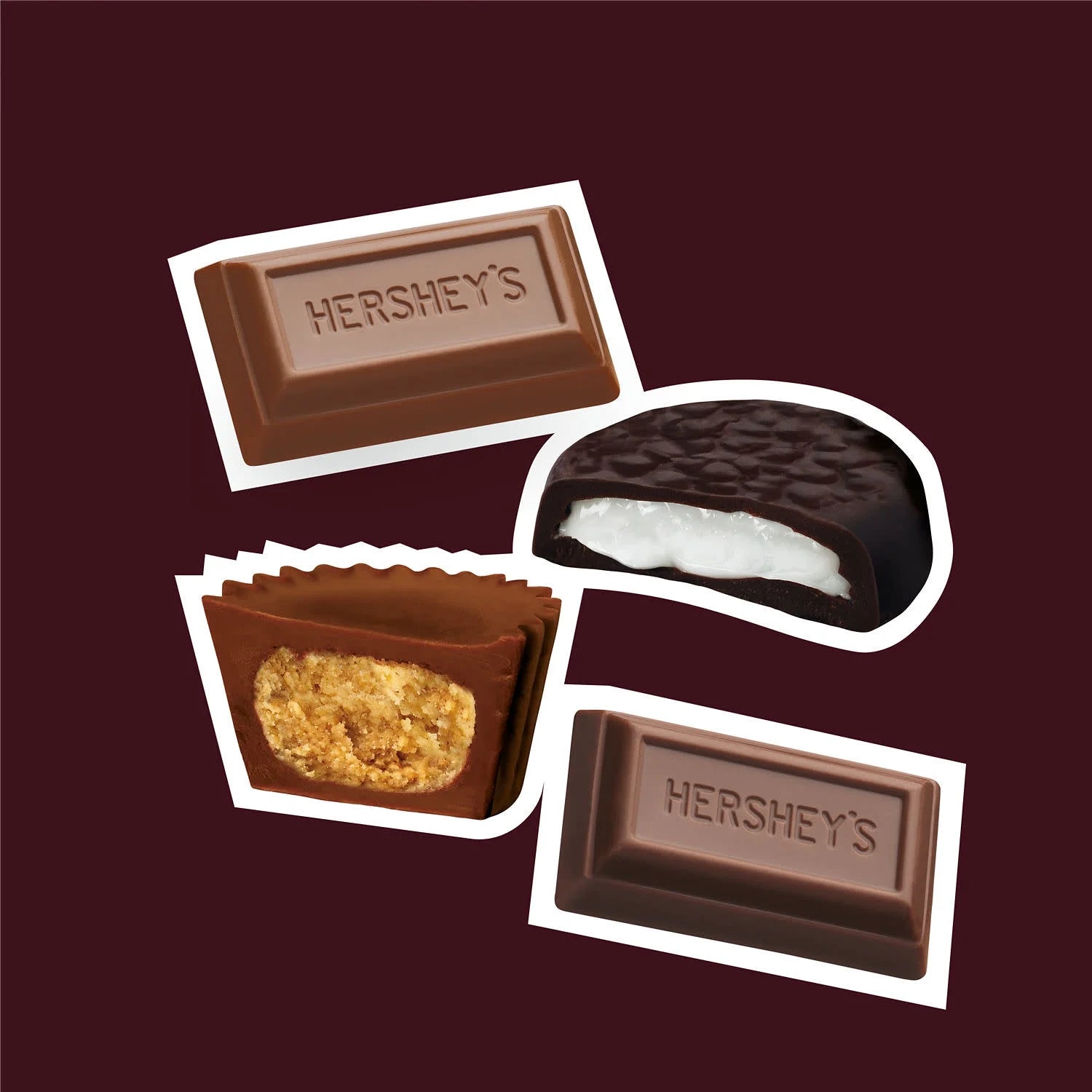 - Includes zero sugar HERSHEY'S SPECIAL DARK chocolate candy bars, HERSHEY'S chocolate candy bars, REESE'S Miniatures chocolate candy and peanut butter cups candy and YORK chocolate candy covered peppermint patties