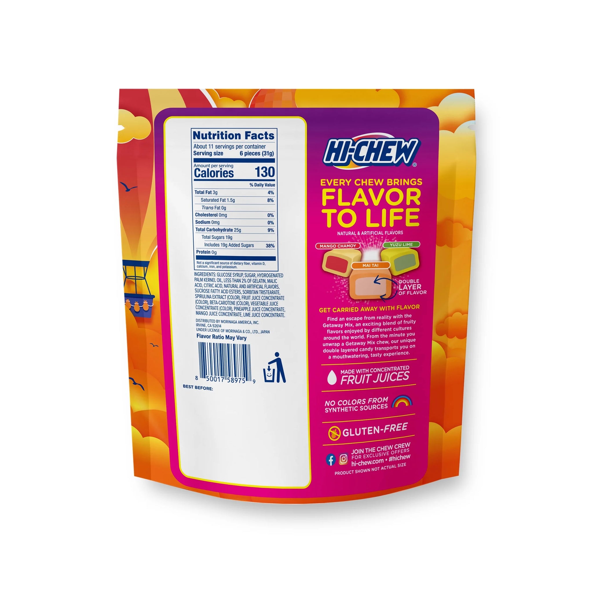 - Contains chewy pieces of individually-wrapped Fruity HI-CHEW candy. Each piece is made with real fruit juices and purees!