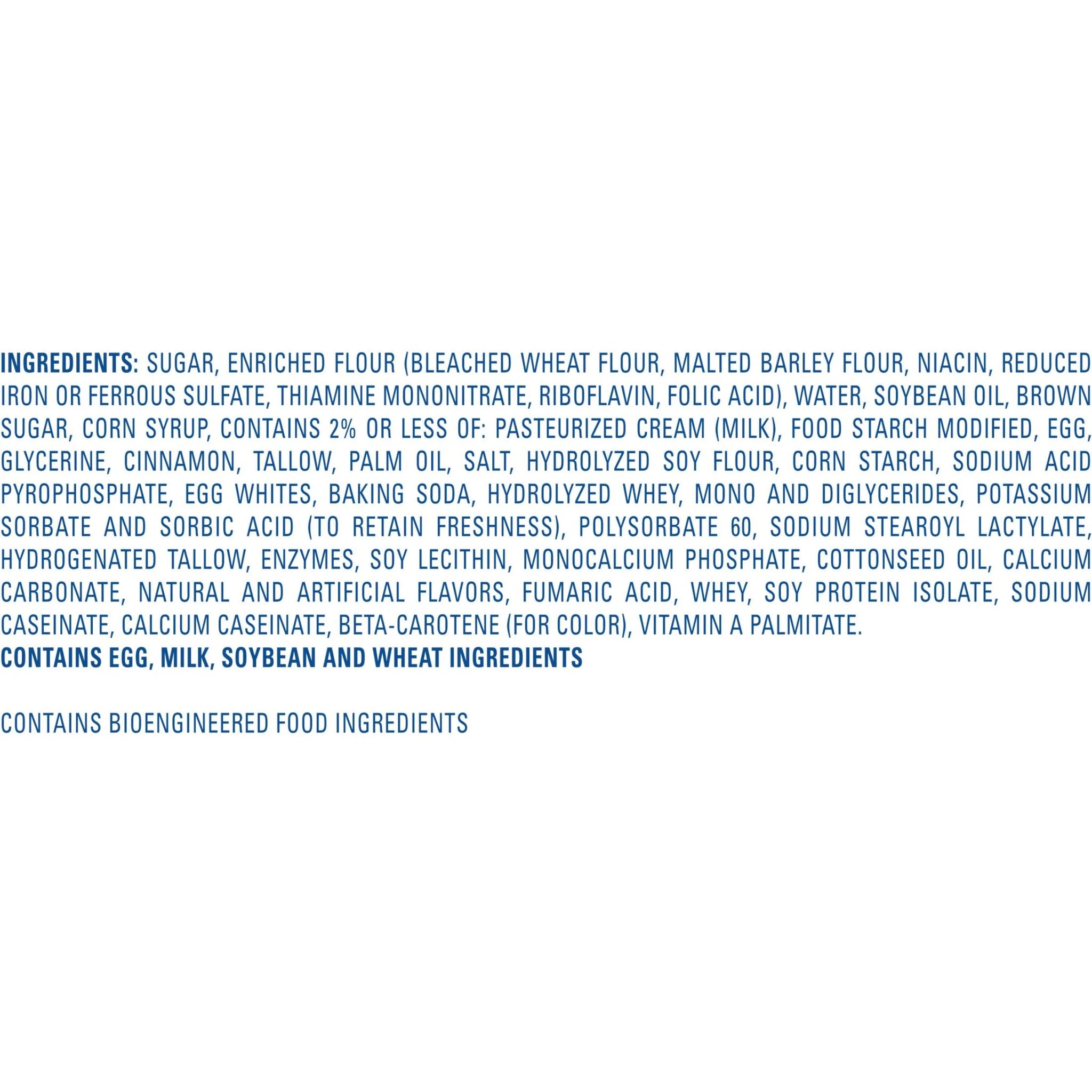 Sugar, Enriched Flour (Bleached Wheat Flour, Malted Barley Flour, Niacin, Reduced Iron Or Ferrous Sulfate, Thiamine Mononitrate, Riboflavin, Folic Acid), Water, Soybean Oil, Brown Sugar, Corn Syrup, Contains 2% Or Less Of: Pasteurized Cream (Milk), Food Starch Modified, Egg, Glycerine, Cinnamon, Tallow, Palm Oil, Salt, Hydrolyzed Soy Flour, Corn Starch, Sodium Acid Pyrophosphate, Egg Whites, Baking Soda, Hydrolyzed Whey, Mono And Diglycerides, Potassium Sorbate And Sorbic Acid (To Retain Freshness), Polysorbate 60, Sodium Stearoyl Lactylate, Hydrogenated Tallow, Enzymes, Soy Lecithin, Monocalcium Phosphate, Cottonseed Oil, Calcium Carbonate, Natural And Artificial Flavors, Fumaric Acid, Whey, Soy Protein Isolate, Sodium Caseinate, Calcium Caseinate, Beta-Carotene (For Color), Vitamin A Palmitate./div>