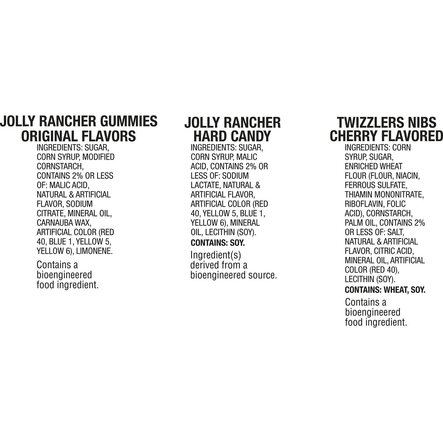 - Includes JOLLY RANCHER gummies original flavored candy, JOLLY RANCHER hard candy and TWIZZLERS NIBS cherry flavored chewy candy