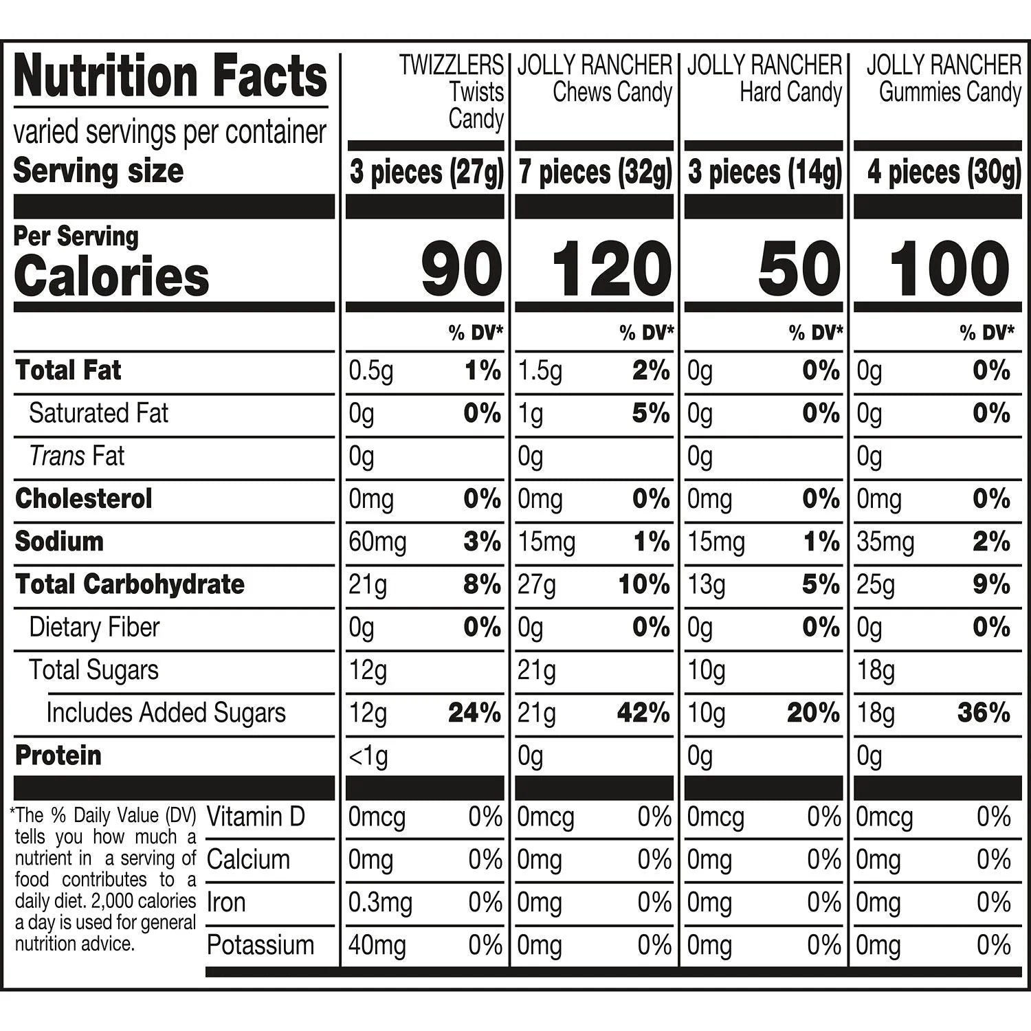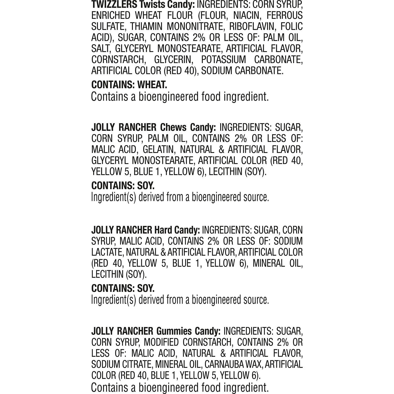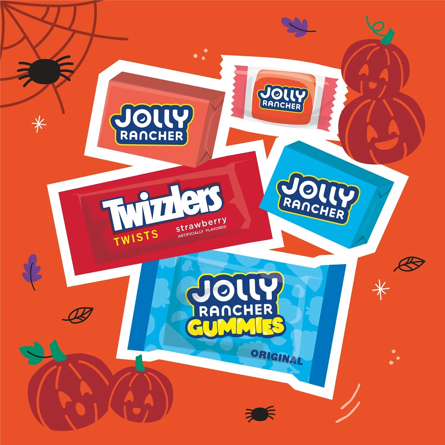 - Includes TWIZZLERS Twists strawberry flavored chewy candy, JOLLY RANCHER gummies candy, JOLLY RANCHER hard candy and JOLLY RANCHER Chews candy