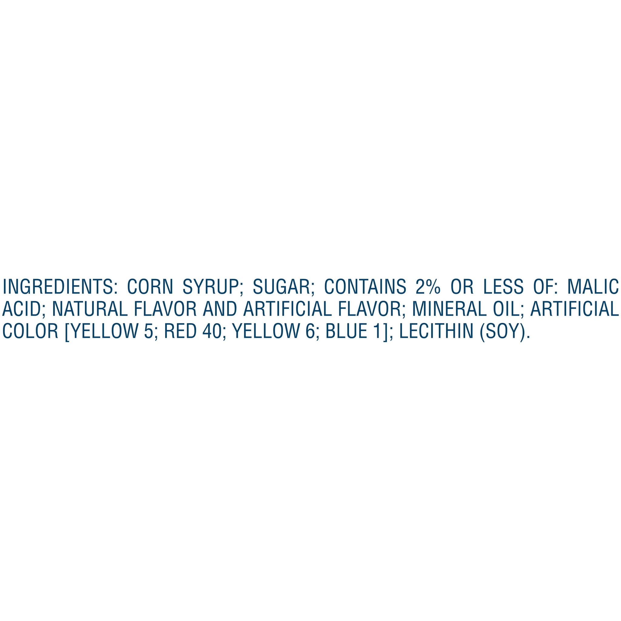 CORN SYRUP, SUGAR, CONTAINS 2% OR LESS OF: MALIC ACID, NATURAL & ARTIFICIAL FLAVOR, ARTIFICIAL COLOR (YELLOW 5, RED 40, YELLOW 6, BLUE 1), LECITHIN (SOY)./div>