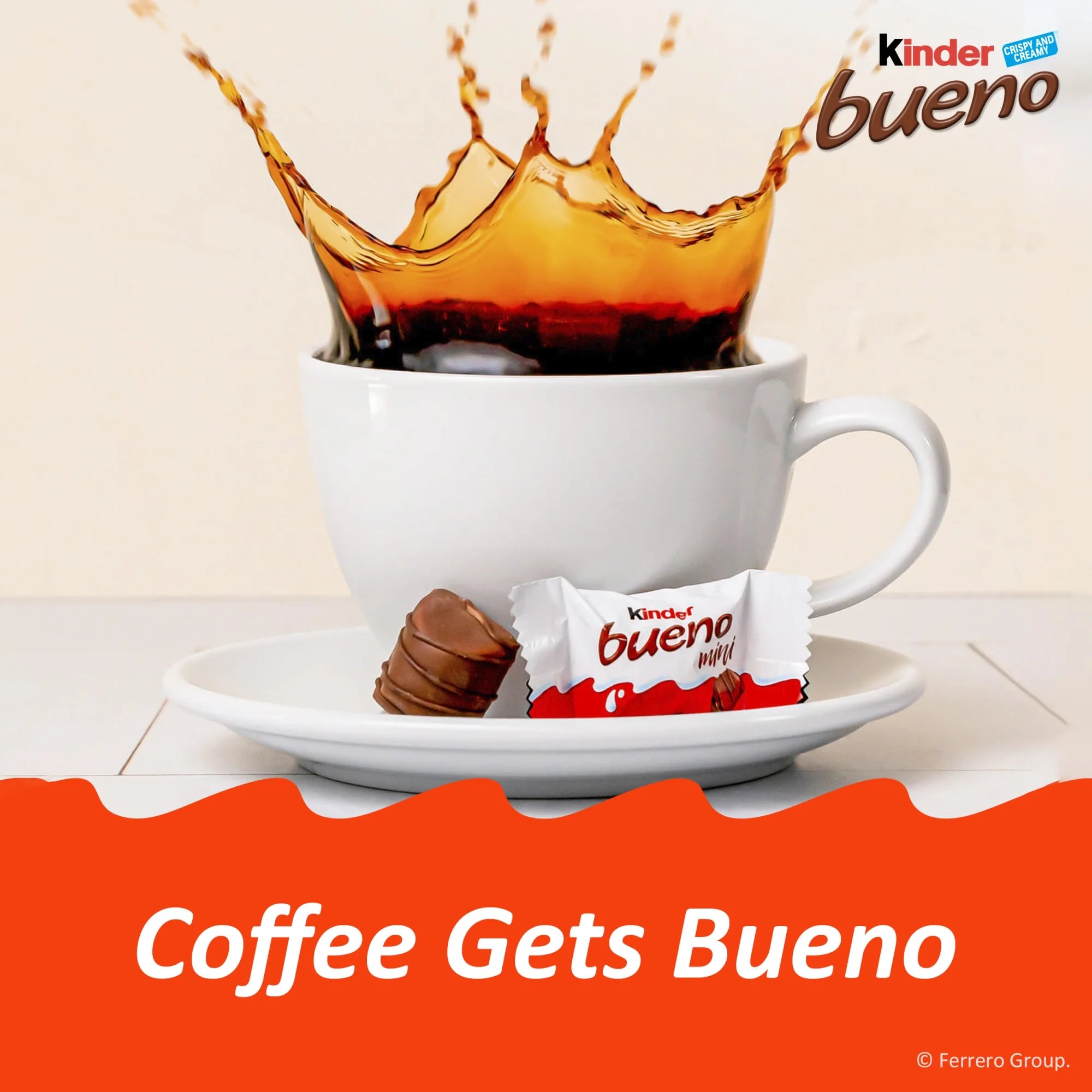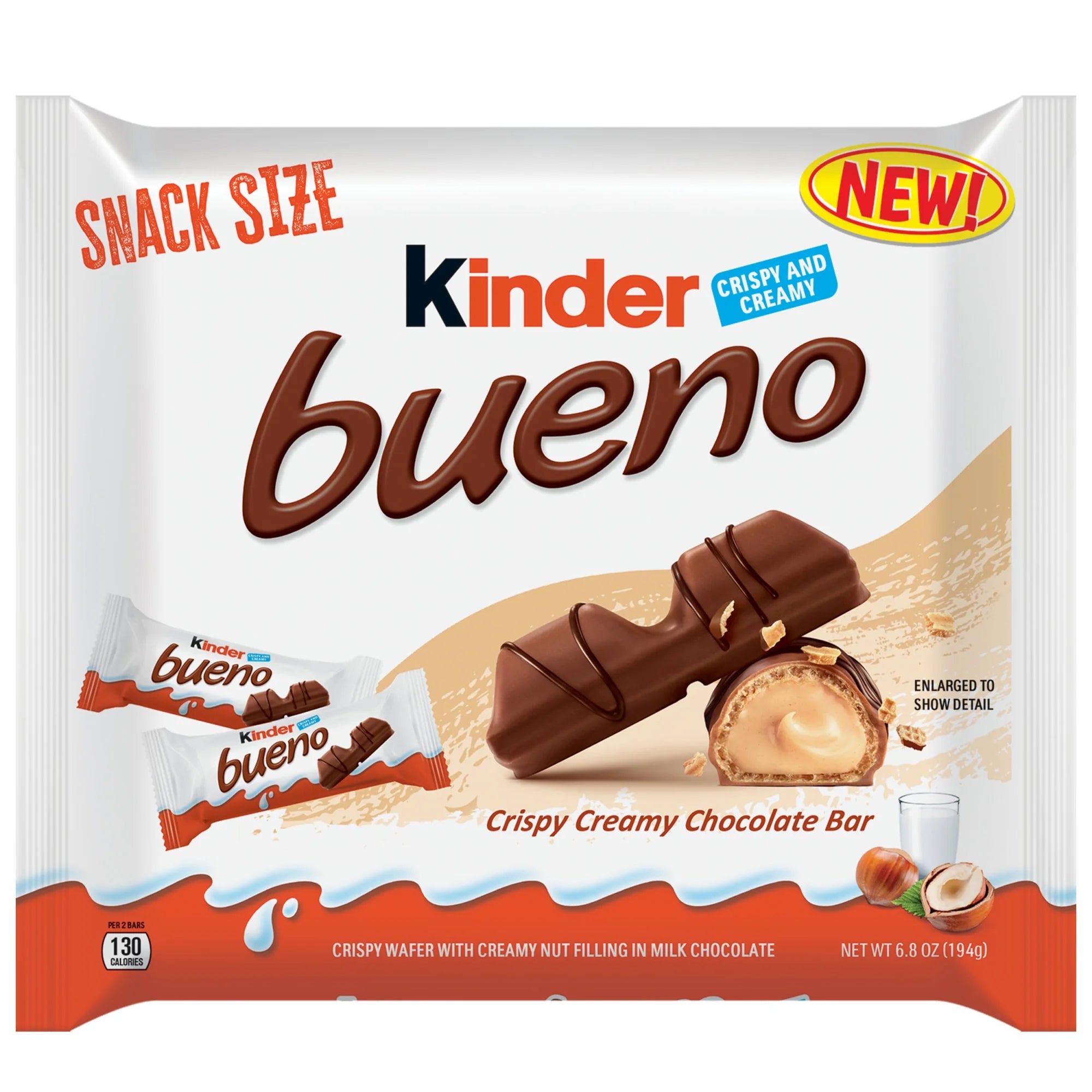 - TREAT YOURSELF: Make an ordinary moment extraordinary by adding the crispy, creamy deliciousness of a Kinder Bueno milk chocolate bar to your coffee moment or movie night. You can also make your desserts and baked goods more delicious by topping them with Kinder Bueno