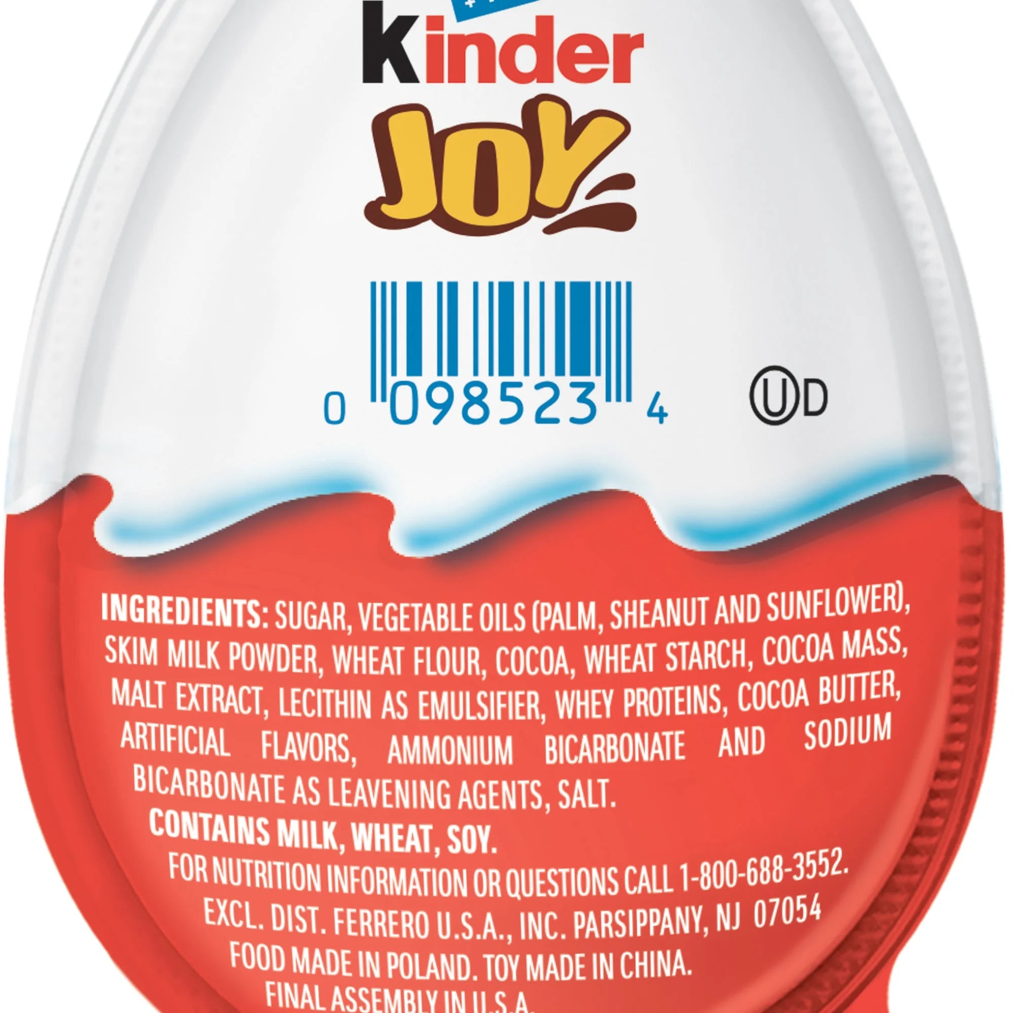 Make Easter extra special with Kinder Joy, the chocolate egg that brings sweet delight and a fun surprise in every bite! Each Kinder Joy egg features a delicious blend of smooth sweet cream and crispy cocoa wafer bites, creating a unique and indulgent treat that’s loved by kids and parents alike. But the fun doesn’t stop there! Inside every Kinder Joy egg, there’s a surprise toy that sparks imagination and excitement, making it a perfect addition to Easter baskets, Easter egg hunts, and springtime celebrations. Whether you're filling an Easter basket, treating little ones to a fun surprise, or sharing joy during the Easter holiday, Kinder Joy is the perfect seasonal candy. Each egg is individually wrapped for easy sharing, making it an ideal treat for on-the-go snacking or party favors. Designed for both taste and fun, Kinder Joy delivers a playful experience with every egg, ensuring Easter celebrations are filled with happiness and chocolatey goodness. Brighten up your Easter celebrations with Kinder Joy—a treat crafted for kids and loved by all!