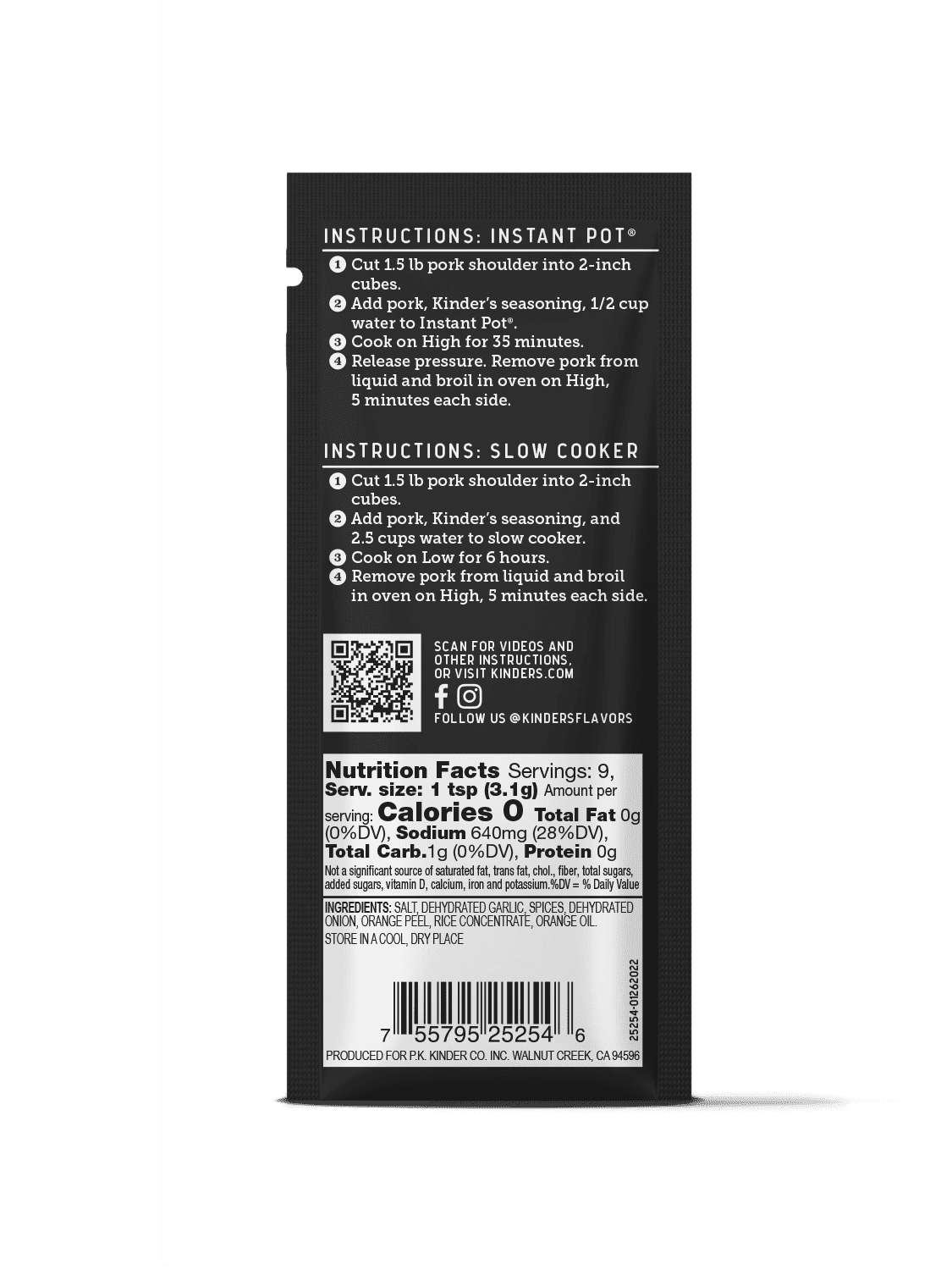 Kinder's Carnitas Mexican Seasoning is a dry seasoning that adds the perfect flavor to a variety of slow cooker and instant pot recipes, including chili dishes, soups, stews, rice and beans, and more! This Mexican-style crispy pork seasoning is great for elevating a weeknight meal or your next chili cookoff. Light up the stove and get cooking with Kinder's Carnitas Mexican Seasoning at your next friends and family gathering.
