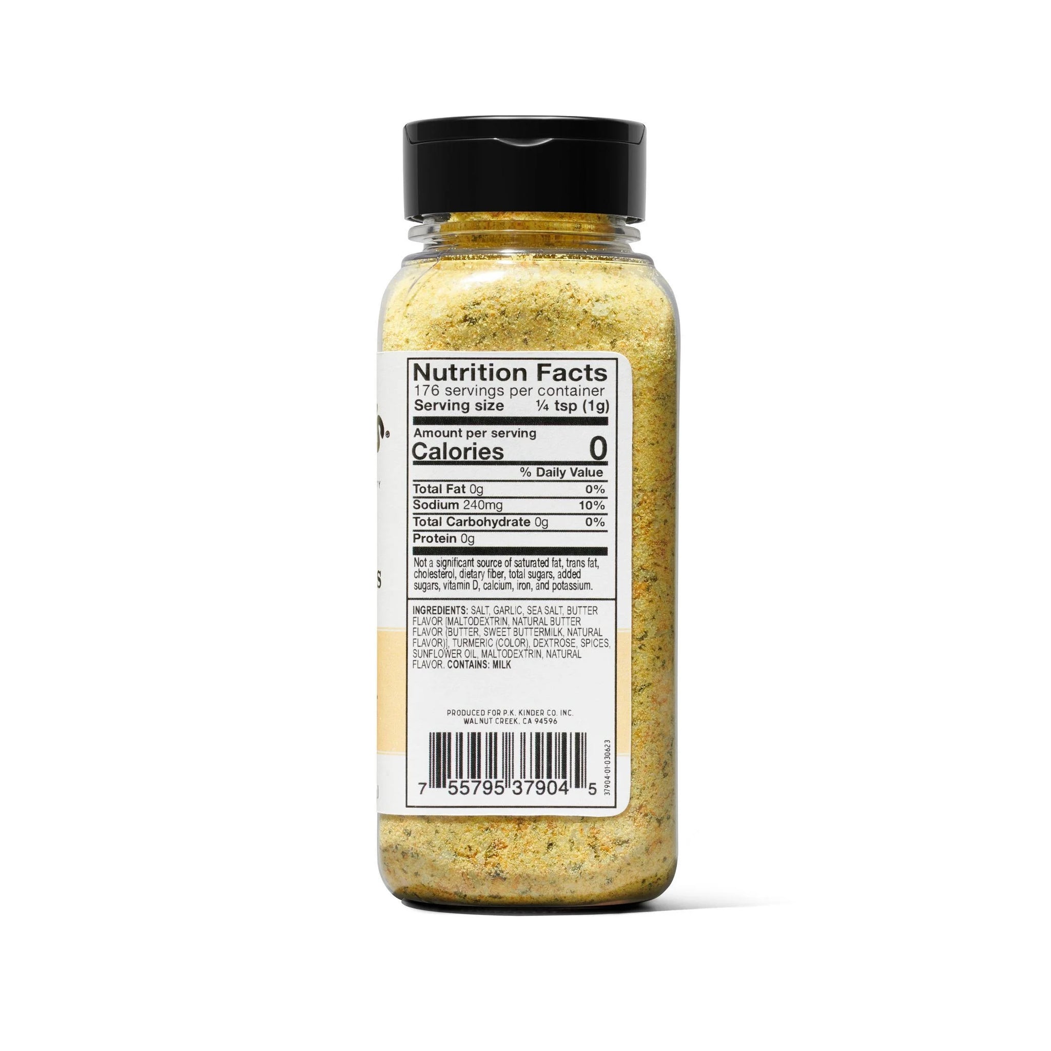Salt, Garlic, Sea Salt, Butter Flavor Maltodextrin, Natural Butter Flavor (Butter, Sweet Buttermilk, Natural Flavor, Turmeric, Color), Dextrose Spices, Sunflower Oil, Maltodextrin, Natural Flavor./div>