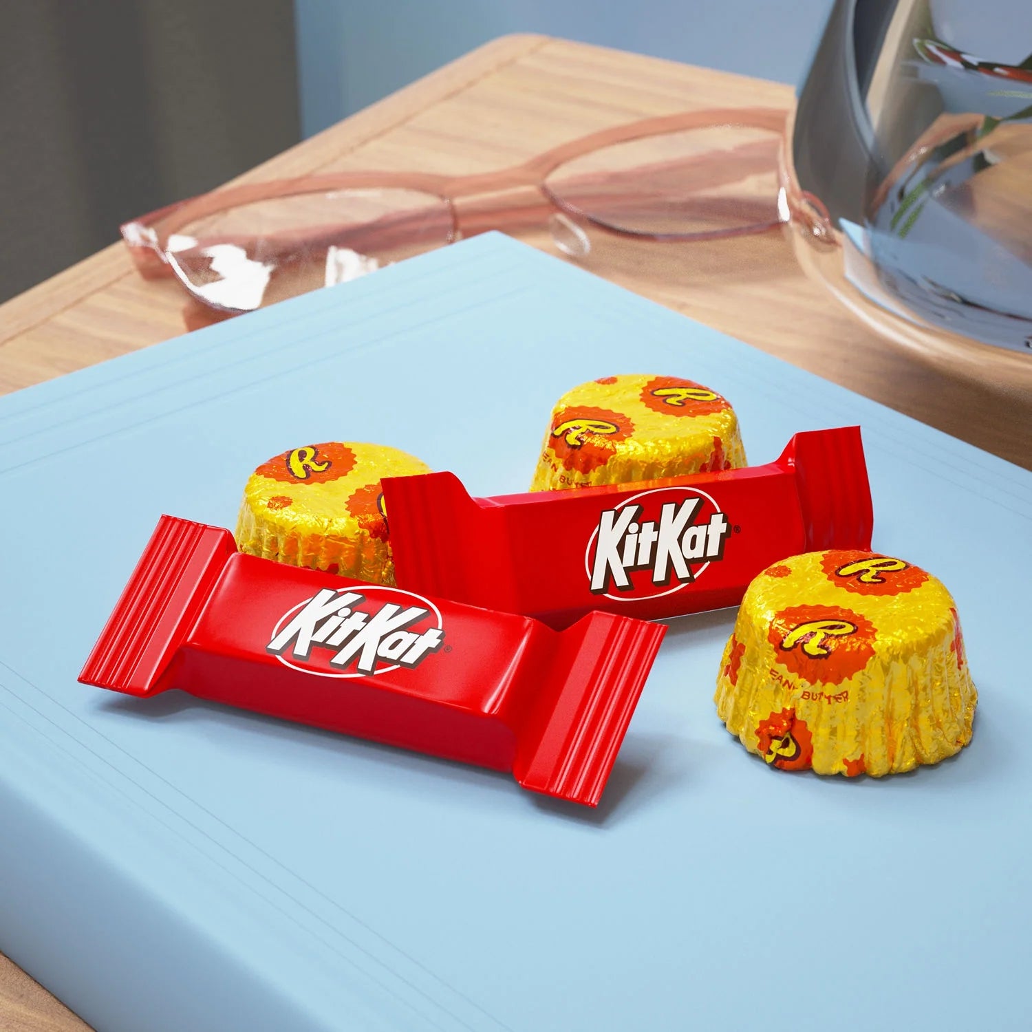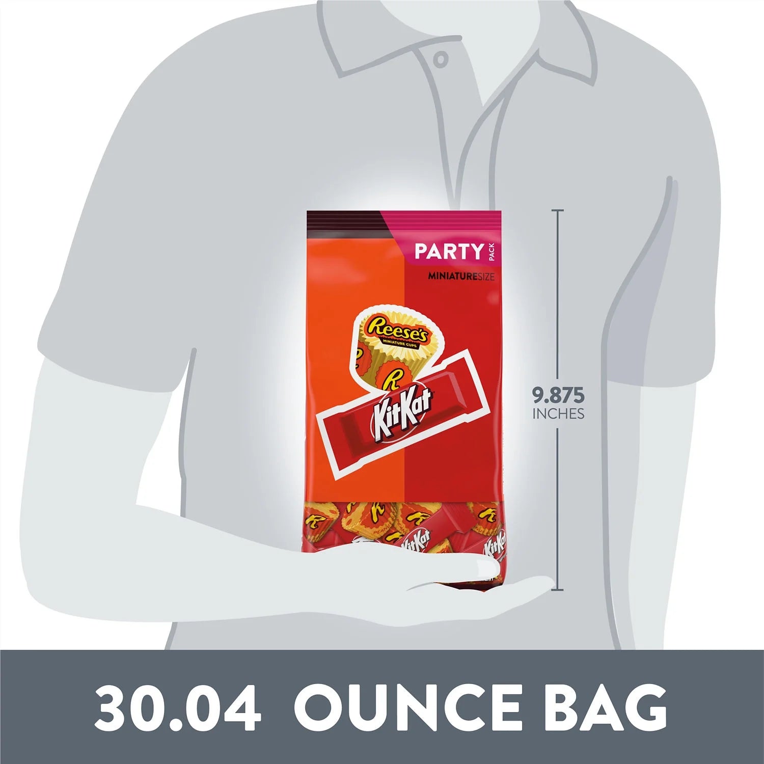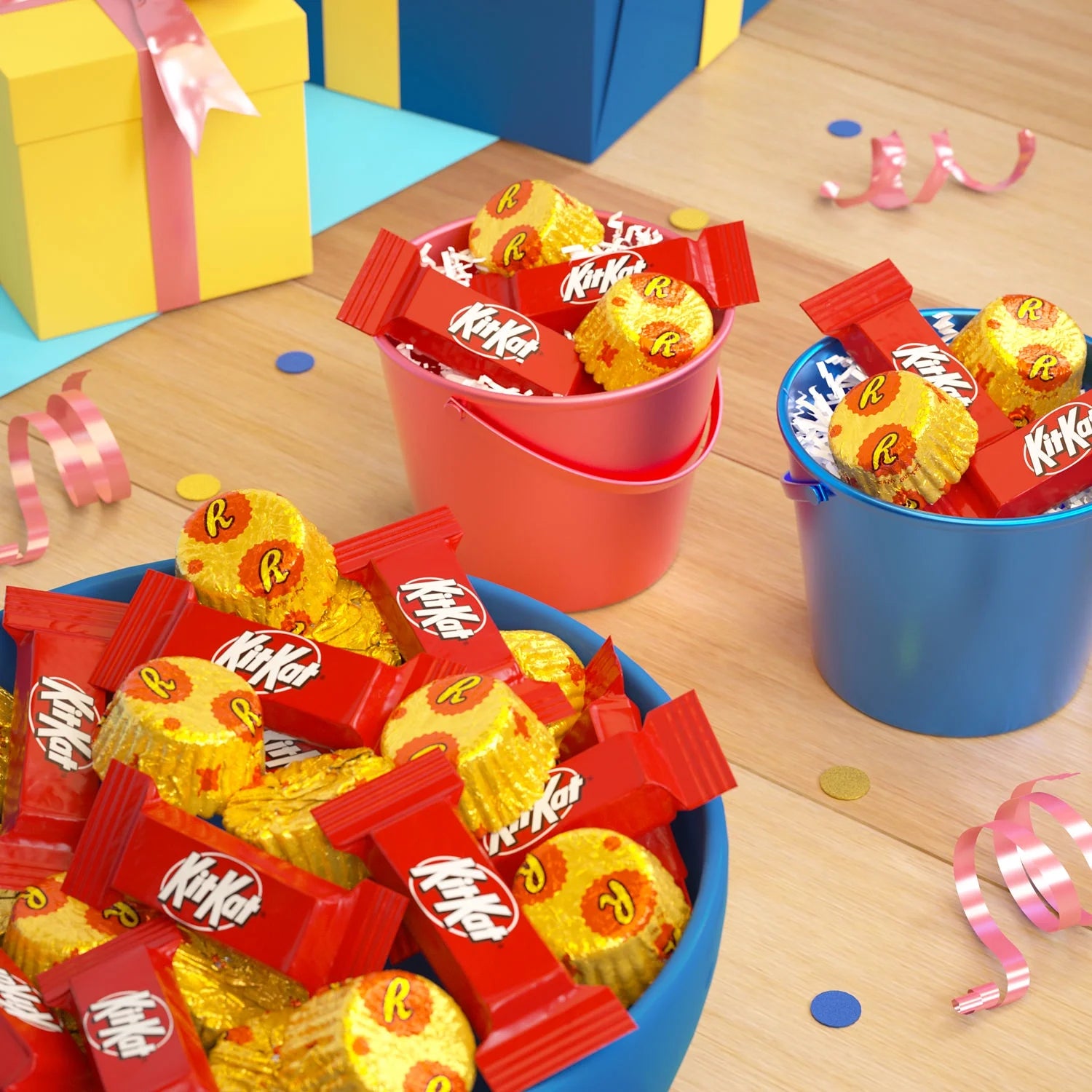Enjoy a delicious, chocolatey treat anywhere and anytime with a variety party pack of assorted REESE'S and KIT KAT® Miniatures milk chocolate candy. Offering two crowd-pleasing favorites you already know and love, this candy assortment is perfect for sharing with family, friends, teammates or coworkers. Take this party pack into the office break room, pour some individually wrapped candies into your jar at home or take a bag to your next sports game to celebrate the win. Hershey candies are also great for parties, lunch boxes, holidays, desserts, picnics, tailgate events and more. You really can't go wrong when you have classic miniature candies on hand. This assorted bag of chocolate candies contains REESE'S milk chocolate peanut butter cups candy and KIT KAT® milk chocolate wafer candy bars — both in miniature pieces for the perfect bite size treat. Add them to your holiday festivities, too! Stuff Christmas stockings, fill Easter baskets, stock Halloween candy bowls and trick or treat bags and create sweet Valentine's Day gift boxes with this mix of treats that everyone on your list will love. Make every major holiday and all of the little moments in between a little sweeter with this party pack bag of individually wrapped candies.