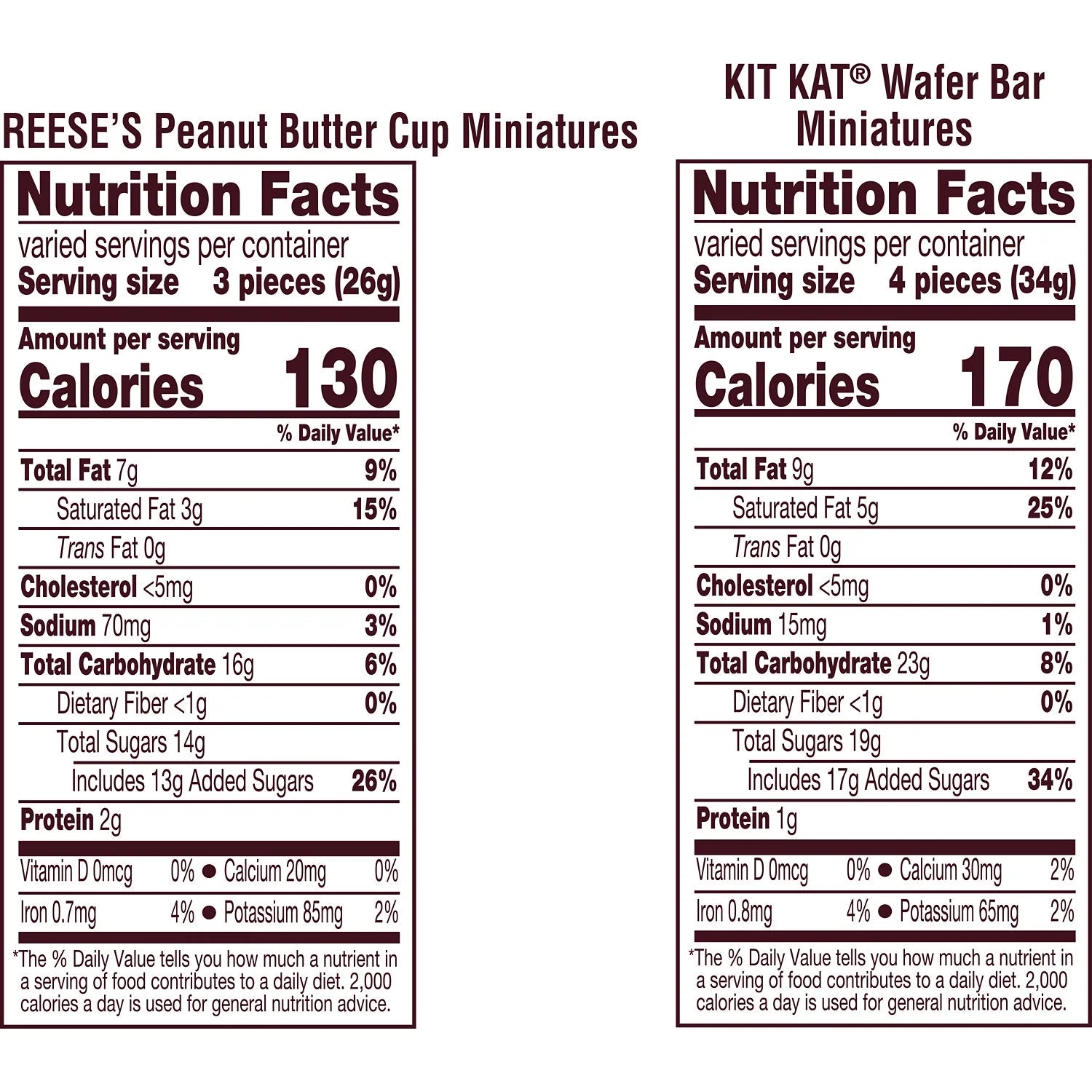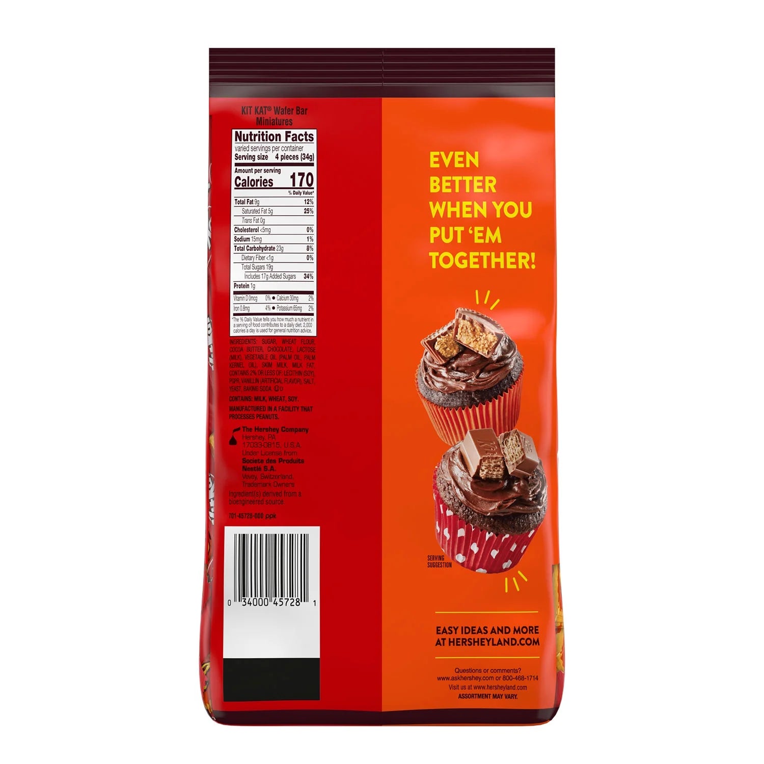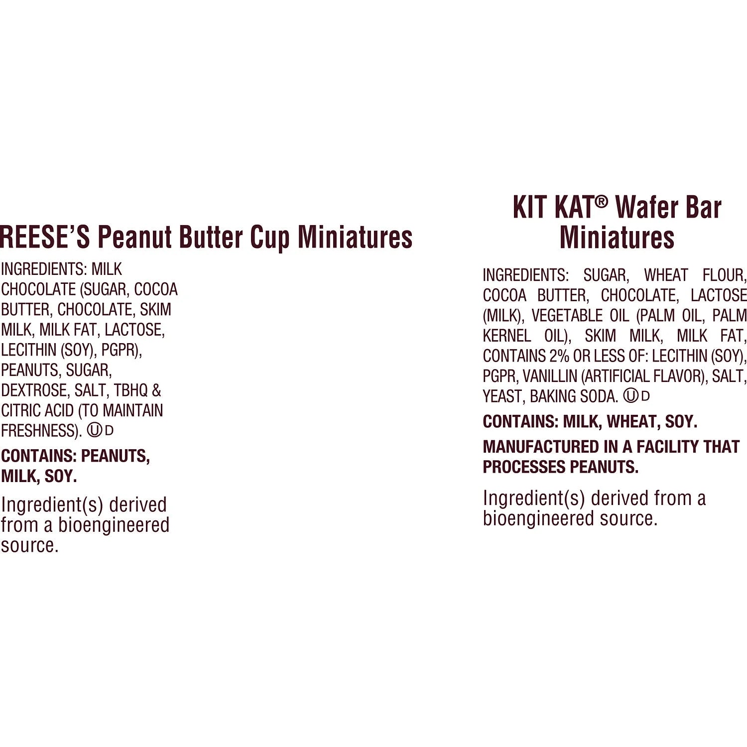 Enjoy a delicious, chocolatey treat anywhere and anytime with a variety party pack of assorted REESE'S and KIT KAT® Miniatures milk chocolate candy. Offering two crowd-pleasing favorites you already know and love, this candy assortment is perfect for sharing with family, friends, teammates or coworkers. Take this party pack into the office break room, pour some individually wrapped candies into your jar at home or take a bag to your next sports game to celebrate the win. Hershey candies are also great for parties, lunch boxes, holidays, desserts, picnics, tailgate events and more. You really can't go wrong when you have classic miniature candies on hand. This assorted bag of chocolate candies contains REESE'S milk chocolate peanut butter cups candy and KIT KAT® milk chocolate wafer candy bars — both in miniature pieces for the perfect bite size treat. Add them to your holiday festivities, too! Stuff Christmas stockings, fill Easter baskets, stock Halloween candy bowls and trick or treat bags and create sweet Valentine's Day gift boxes with this mix of treats that everyone on your list will love. Make every major holiday and all of the little moments in between a little sweeter with this party pack bag of individually wrapped candies.