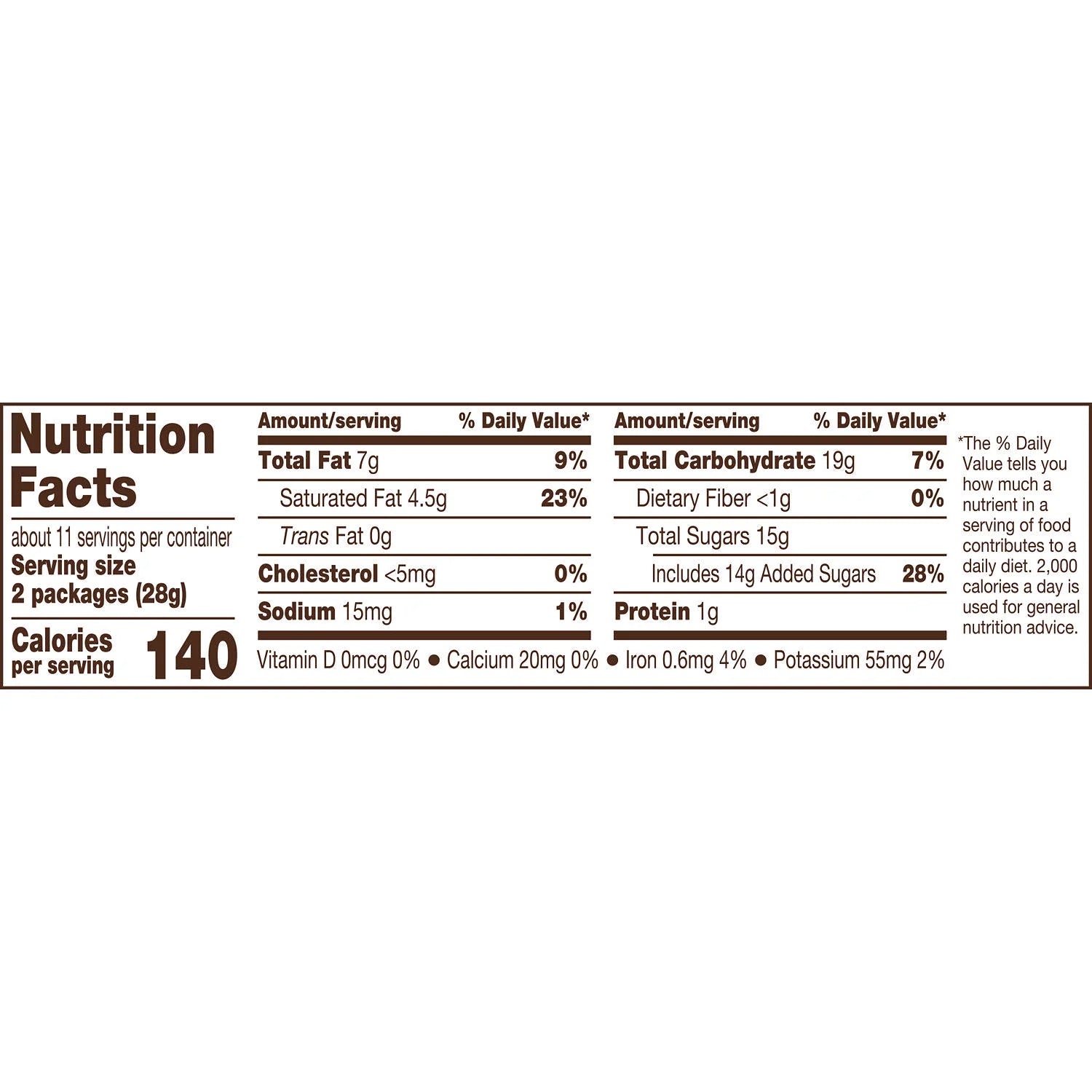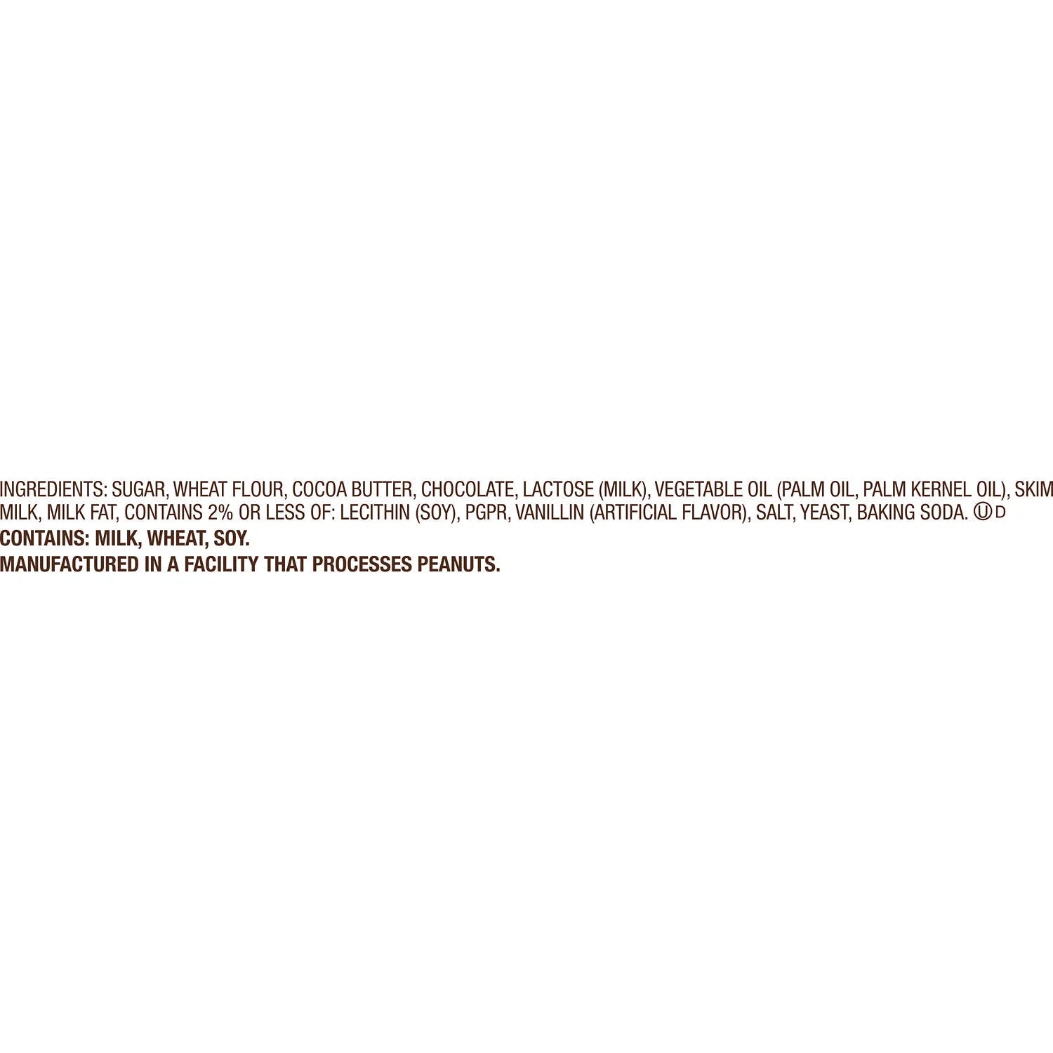 SUGAR, WHEAT FLOUR, COCOA BUTTER, CHOCOLATE, LACTOSE (MILK), VEGETABLE OIL (PALM OIL, PALM KERNEL OIL), SKIM MILK, MILK FAT, CONTAINS 2% OR LESS OF: LECITHIN (SOY), PGPR, VANILLIN (ARTIFICIAL FLAVOR), SALT, YEAST, BAKING SODA./div>