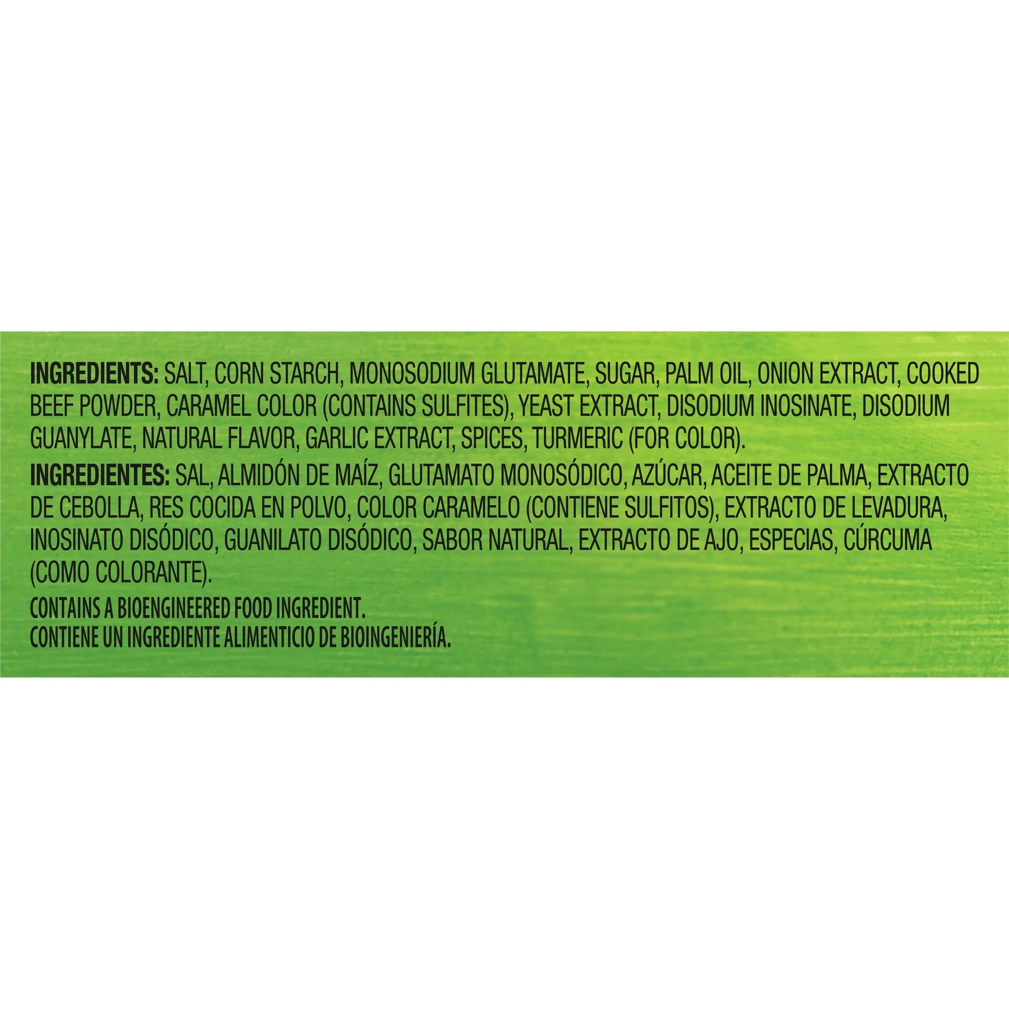 Salt, Corn Starch, Monosodium Glutamate, Sugar, Palm Oil, Onion Extract, Cooked Beef Powder, Caramel Color (Contains Sulfites), Yeast Extract, Disodium Guanylate, Disodium Inosinate, Natural Flavor, Garlic Extract, Dried Parsley, Turmeric (For Color), Spices./div>
