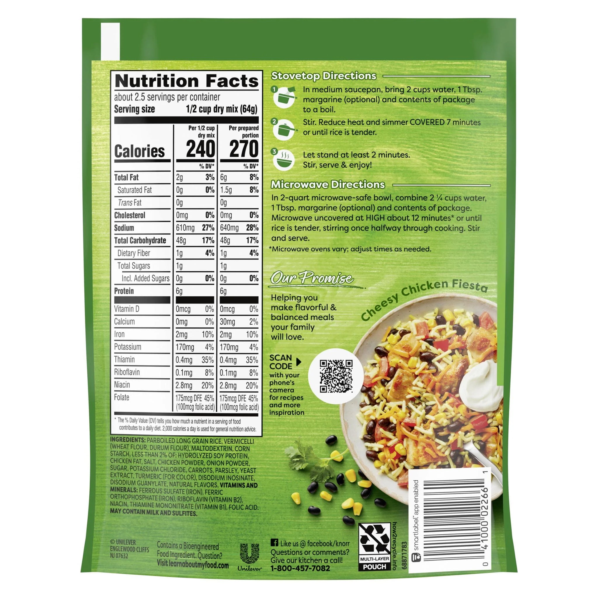 Knorr Rice Sides No Artificial Flavors Chicken Rice, (Shelf-Stable) expertly combines onions, carrots, garlic, and parsley with a mouthwatering, chicken-flavored sauce. Cooks in just 7 minutes on the stove top or in the microwave, and they're perfect as the base for a delicious main dish or as a standalone rice side dish. Knorr Rice Sides have no artificial flavors or preservatives. Simply prepare Knorr Rice Sides and add your favorite meat and vegetables to make a dinner your family is sure to love. Serving Size: 1/2 cup dry mix (64g). MAY CONTAIN MILK, SULFATES.