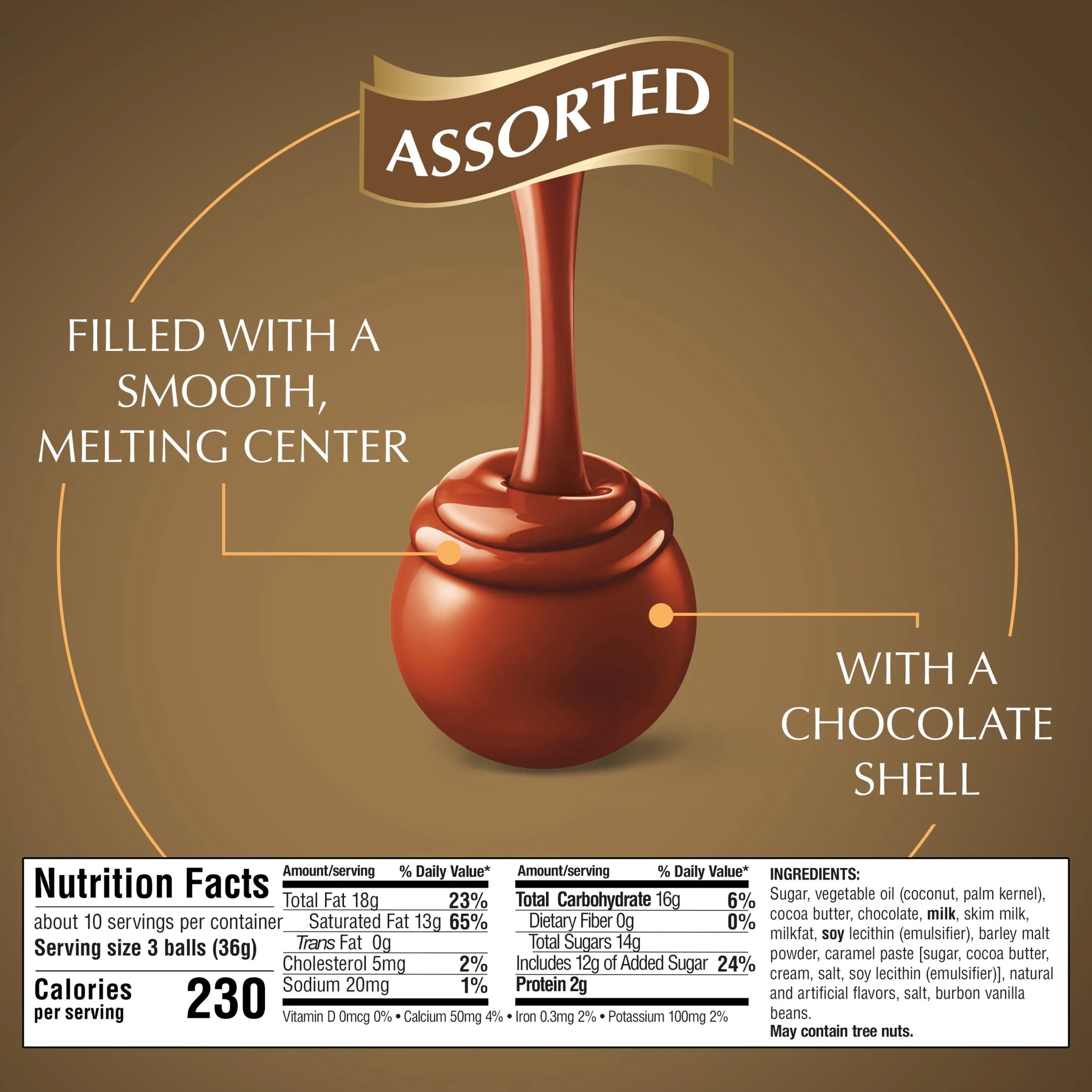 Sugar, vegetable oil (coconut, palm kernel), cocoa butter, chocolate, milk, skim milk, milkfat, soy lecithin (emulsifier), barley malt powder, caramel paste [sugar, cocoa butter, cream, salt, soy lecithin (emulsifier)], natural and artificial flavors, salt, bourbon vanilla beans/div>