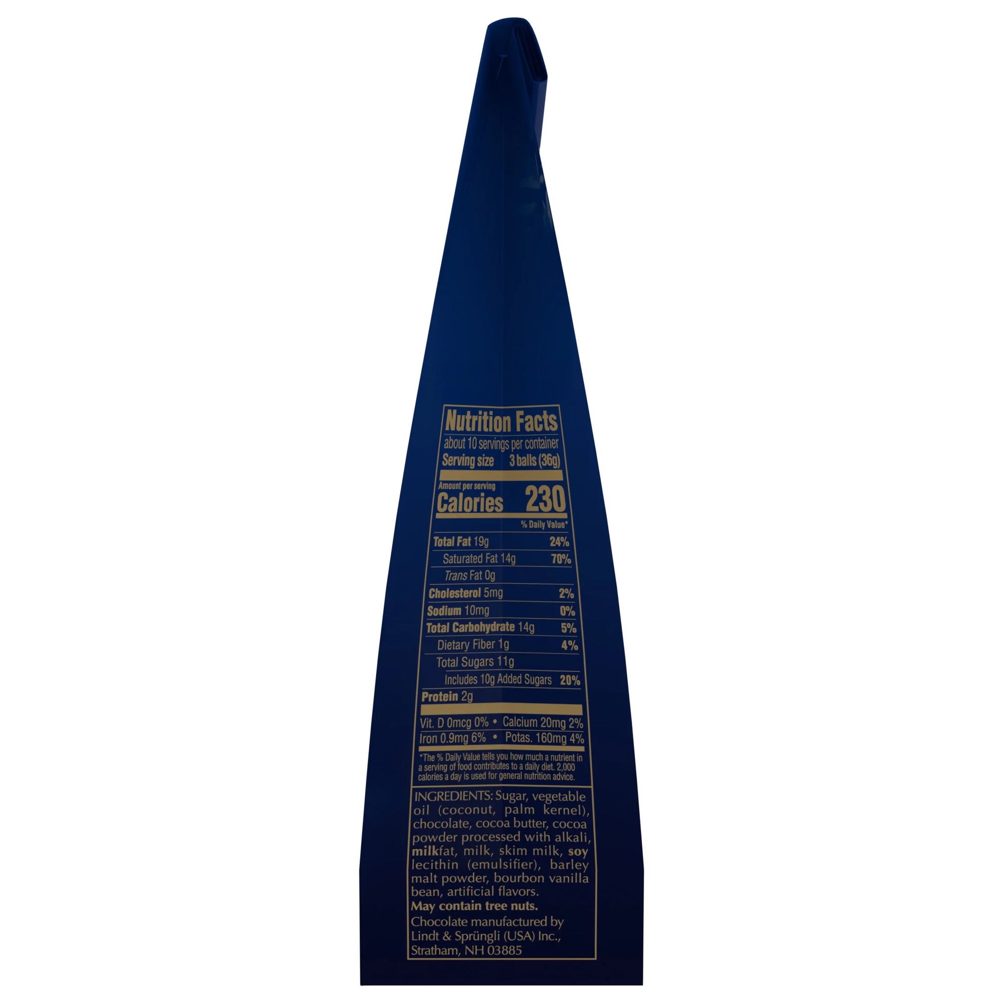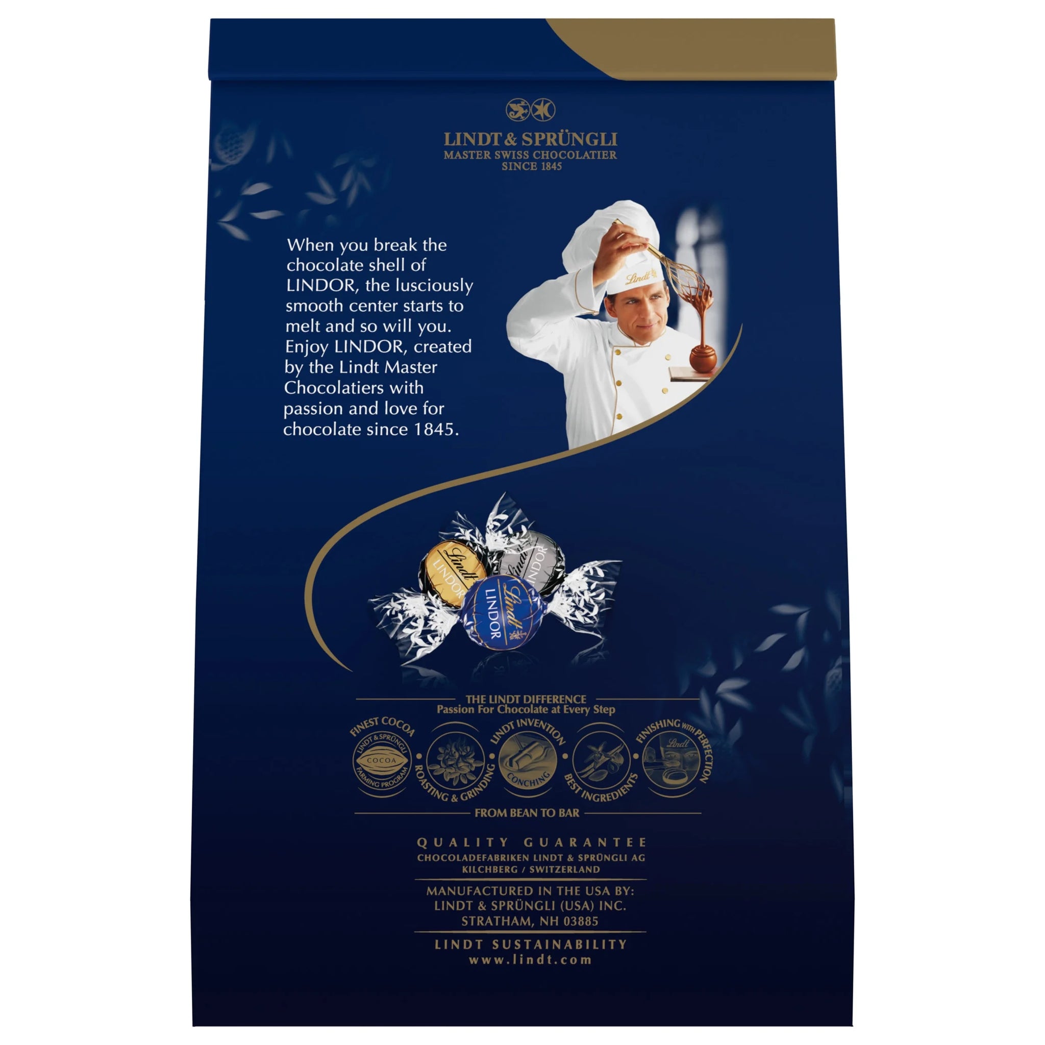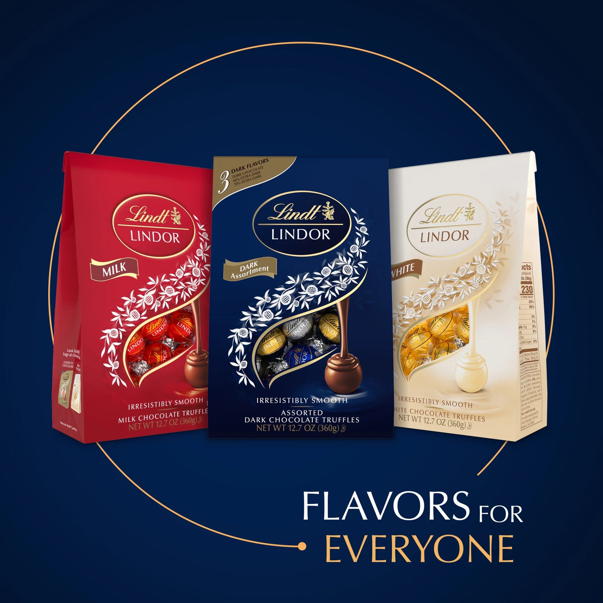 Experience indulgent dark chocolate three ways with Lindt LINDOR Assorted Dark Chocolate Truffles. Surprise the dark chocolate fans in your life with an assorted chocolate candy gift or share a piece of Lindt LINDOR chocolate as an indulgent after-dinner treat. Each bag features Dark Chocolate, 60% Extra Dark Chocolate and 70% Extra Dark Chocolate truffles, so there's something for everyone. Delicate and indulgent, the chocolate shell on every truffle perfectly surrounds the smooth dark truffle filling, which starts melting as soon as you break the shell. These individually wrapped dark chocolate candy truffles are the perfect size to enjoy anytime, anywhere. Lindt chocolate embodies the passion and expert craftsmanship of Lindt Master Chocolatiers for a luscious and rewarding chocolate experience. *Information not complete; check label of actual product being purchased.*
