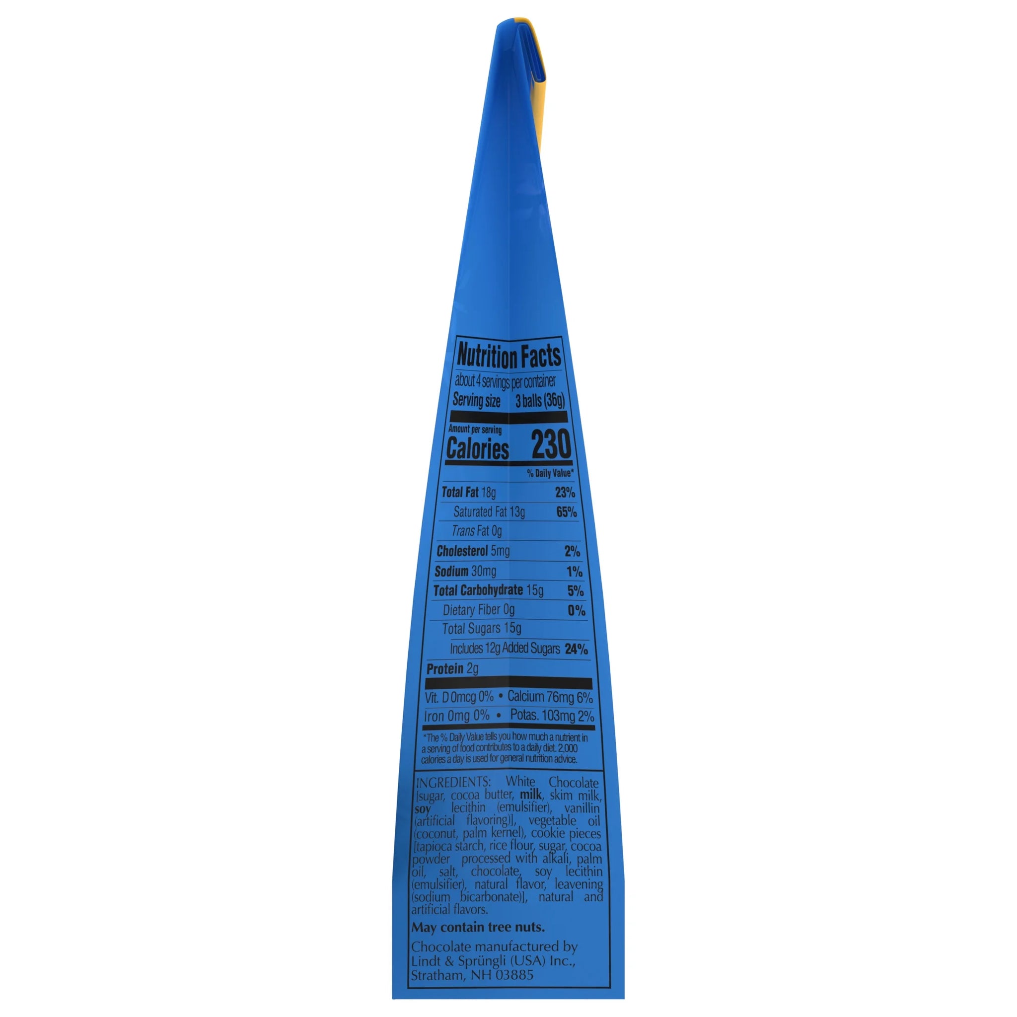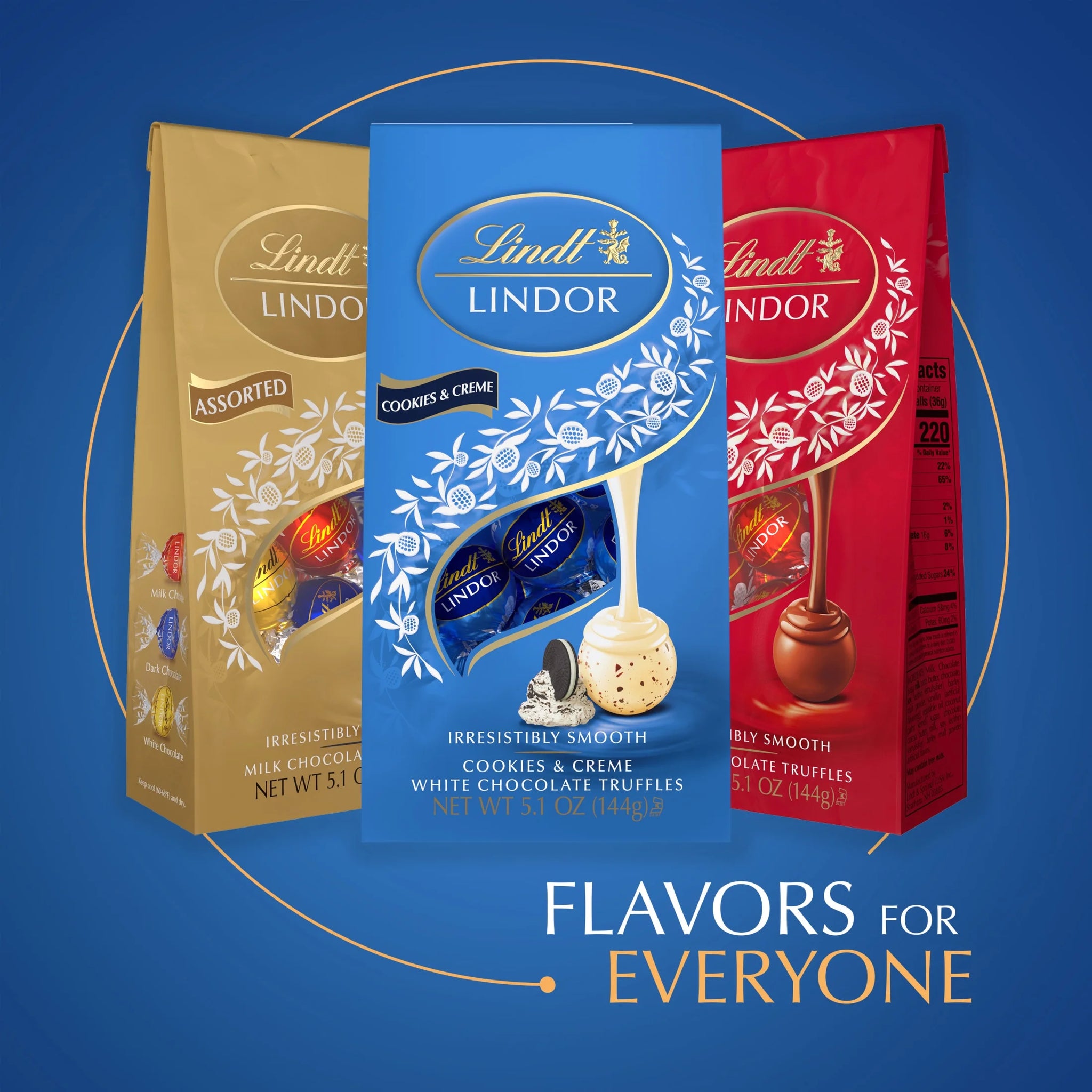 Experience the sophisticated flavor of LINDOR Cookies and Creme White Chocolate Truffles. Inspired by the indulgently creamy taste of cookies and cream, these truffles make a luxurious gift for someone special, or save Lindt LINDOR chocolate truffles as the perfect indulgence for yourself. White chocolate shell with cookie pieces and a cookies and crème flavored truffle filling, making every bite irresistible. When you break the shell, the truffle's smooth, luscious center begins to melt and so will you. These individually wrapped chocolates are the perfect size to enjoy anytime, anywhere. Lindt chocolate embodies the passion and expert craftsmanship of Lindt Master Chocolatiers for a luscious and rewarding chocolate experience. *Information not complete; check label of actual product being purchased.*
