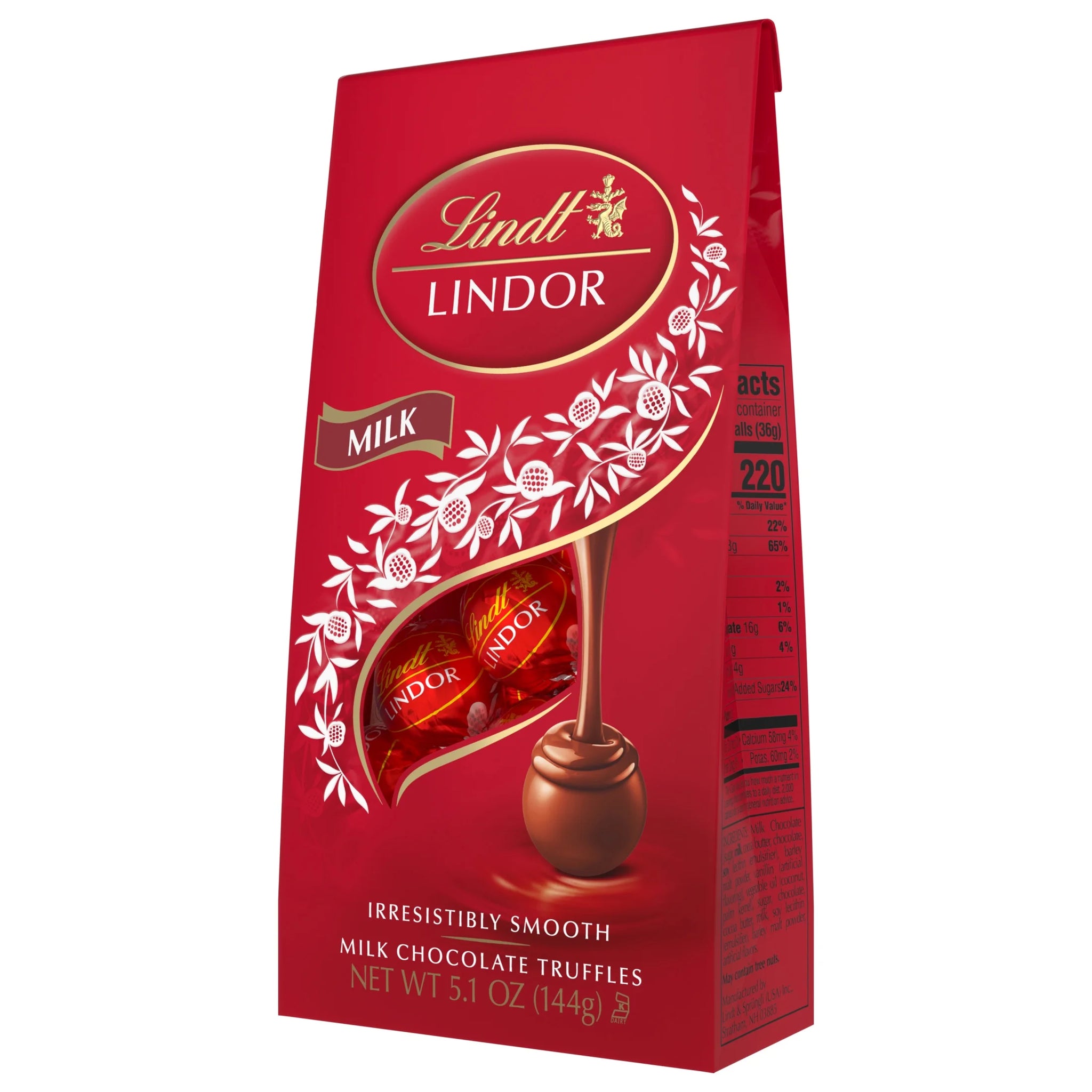 Lindt 5.1 Oz Lindor Milk Chocolate Candy Truffles, 5.1 Oz, Bag