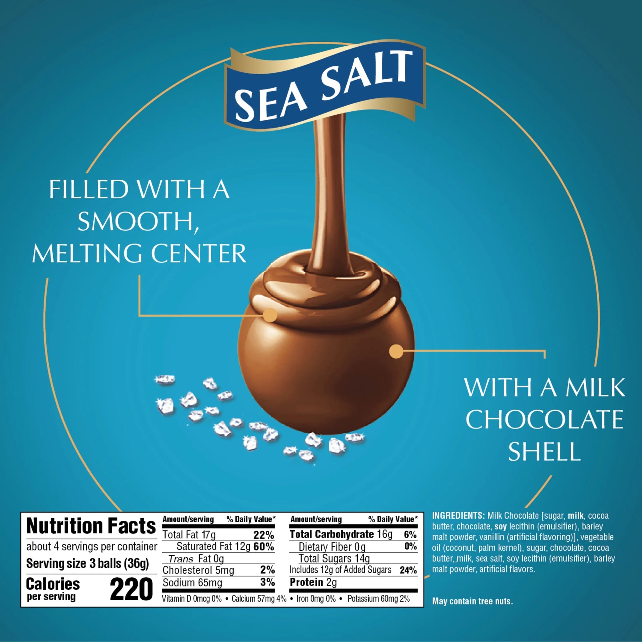Experience the ultimate chocolate indulgence with Lindt LINDOR Sea Salt Milk Chocolate Truffles. Delight in a few Lindt LINDOR Chocolate Truffles with your after-dinner drink of choice, or gift the luxury of milk chocolate candy to someone special. With a delicate milk chocolate shell and a luscious, smooth melting milk truffle center, this Lindt chocolate recipe combines our signature smooth milk chocolate enhanced by the subtle addition of sea salt for a deliciously satisfying taste experience. When you break the shell, the truffle's smooth, luscious center begins to melt and so will you. These individually wrapped truffles are the perfect size to enjoy anytime, anywhere. Lindt chocolate embodies the passion and expert craftsmanship of Lindt Master Chocolatiers for a luscious and rewarding chocolate experience. Made to Melt You. Anytime. Anywhere. In addition to Sea Salt Milk Chocolate Truffles, Lindt LINDOR truffles are also in an array of other irresistible flavors, including dark chocolate, white chocolate, hazelnut and more. *Information not complete; check label of actual product being purchased.*