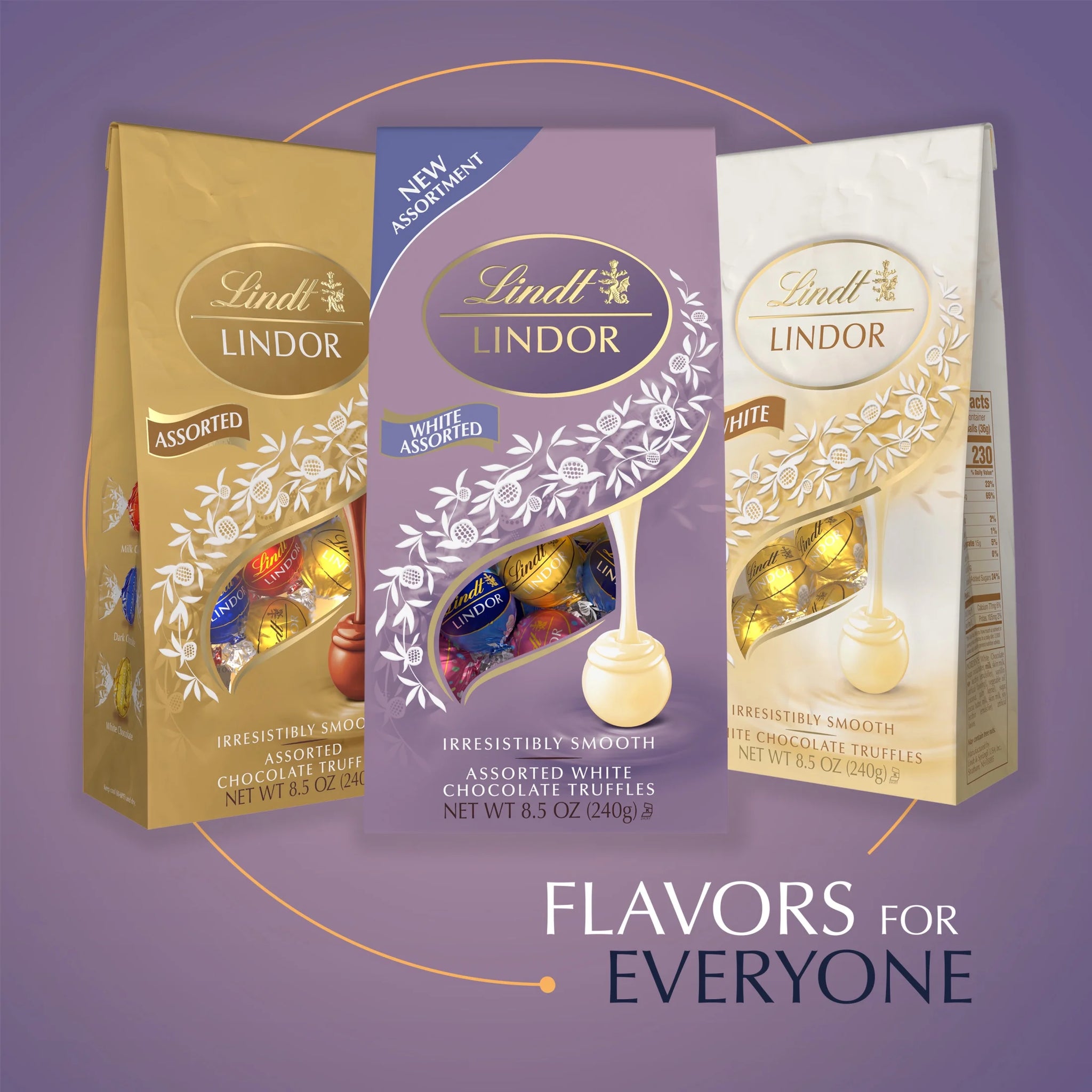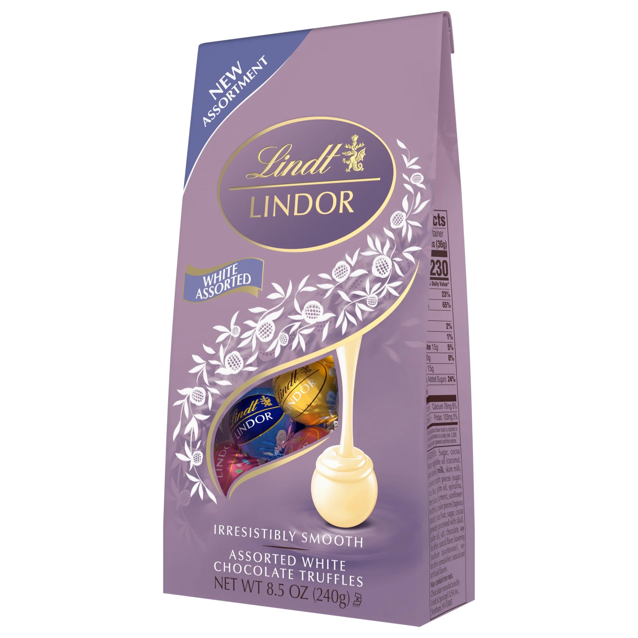Experience the flavors of LINDOR white chocolate in this classic three flavor assortment. Surprise friends and family with a chocolate candy gift, or share a piece of LINDOR chocolate as a sweet, indulgent after-dinner treat. Each bag features White, Birthday Cake, Cookies & Creme LINDOR chocolate truffles. Smooth, melting, luscious. When you break the shell, the truffle's smooth center begins to melt and so will you. These individually wrapped truffles are the perfect size to enjoy anytime, anywhere. Lindt chocolate embodies the passion and expert craftsmanship of Lindt Master Chocolatiers for a luscious and rewarding chocolate experience. *Information not complete; check label of actual product being purchased.*