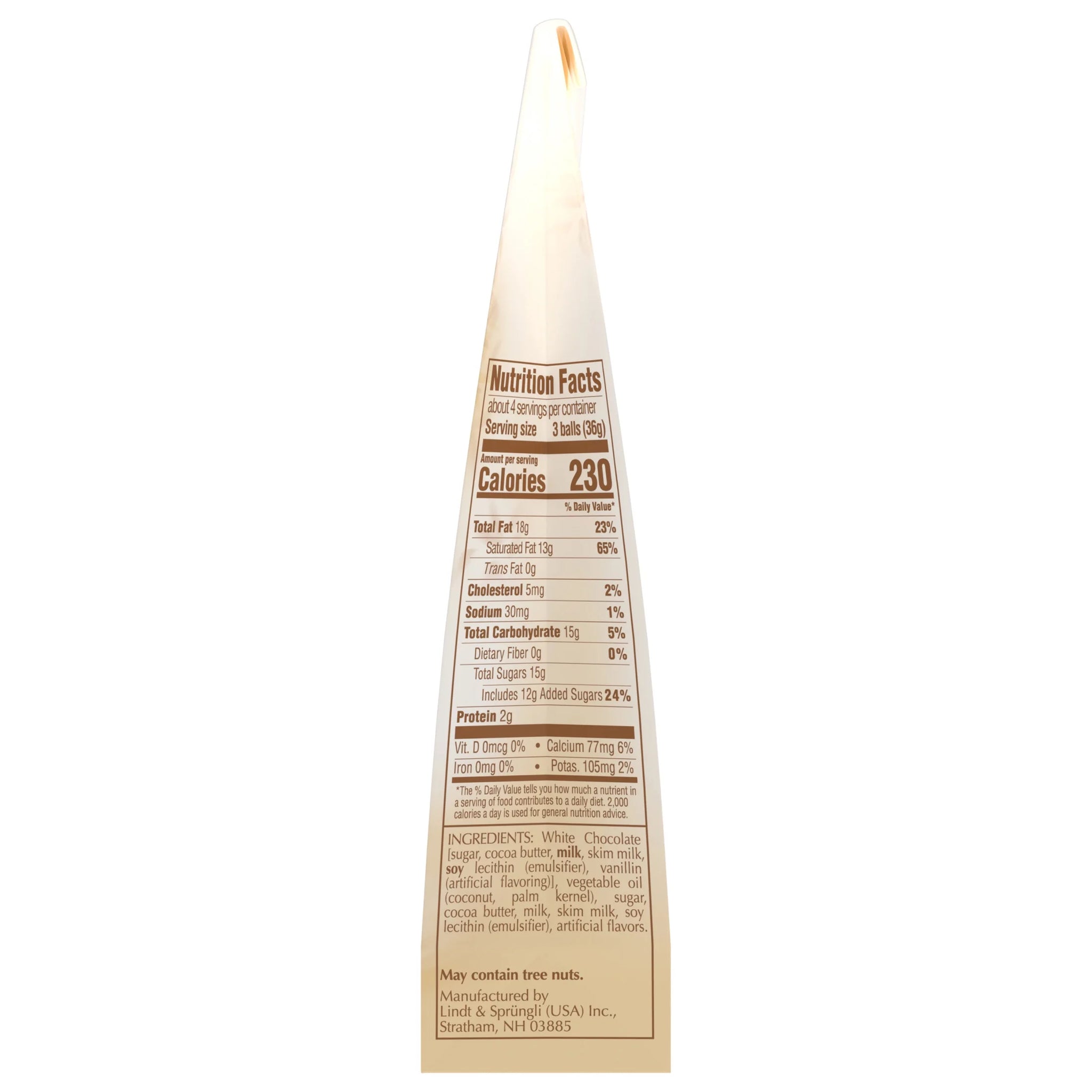 Experience the ultimate white chocolate indulgence with Lindt LINDOR White Chocolate Truffles. Surprise someone special with a white chocolate candy gift, or share one of these Lindt LINDOR Chocolate Truffles as a sweet, indulgent after-dinner treat. With a delicate white chocolate shell and a luscious, smooth melting white truffle center, this truffle proves that white chocolate has never been so creamy and indulgent. When you break the shell, the truffle's smooth, luscious center begins to melt and so will you. These individually wrapped chocolates are the perfect size to enjoy anytime, anywhere. Lindt chocolate embodies the passion and expert craftsmanship of Lindt Master Chocolatiers for a luscious and rewarding chocolate experience. Made to Melt You. Anytime. Anywhere. In addition to White Chocolate Truffles, Lindt LINDOR truffles are also in an array of other irresistible flavors, including dark chocolate, hazelnut and more. *Information not complete; check label of actual product being purchased.*