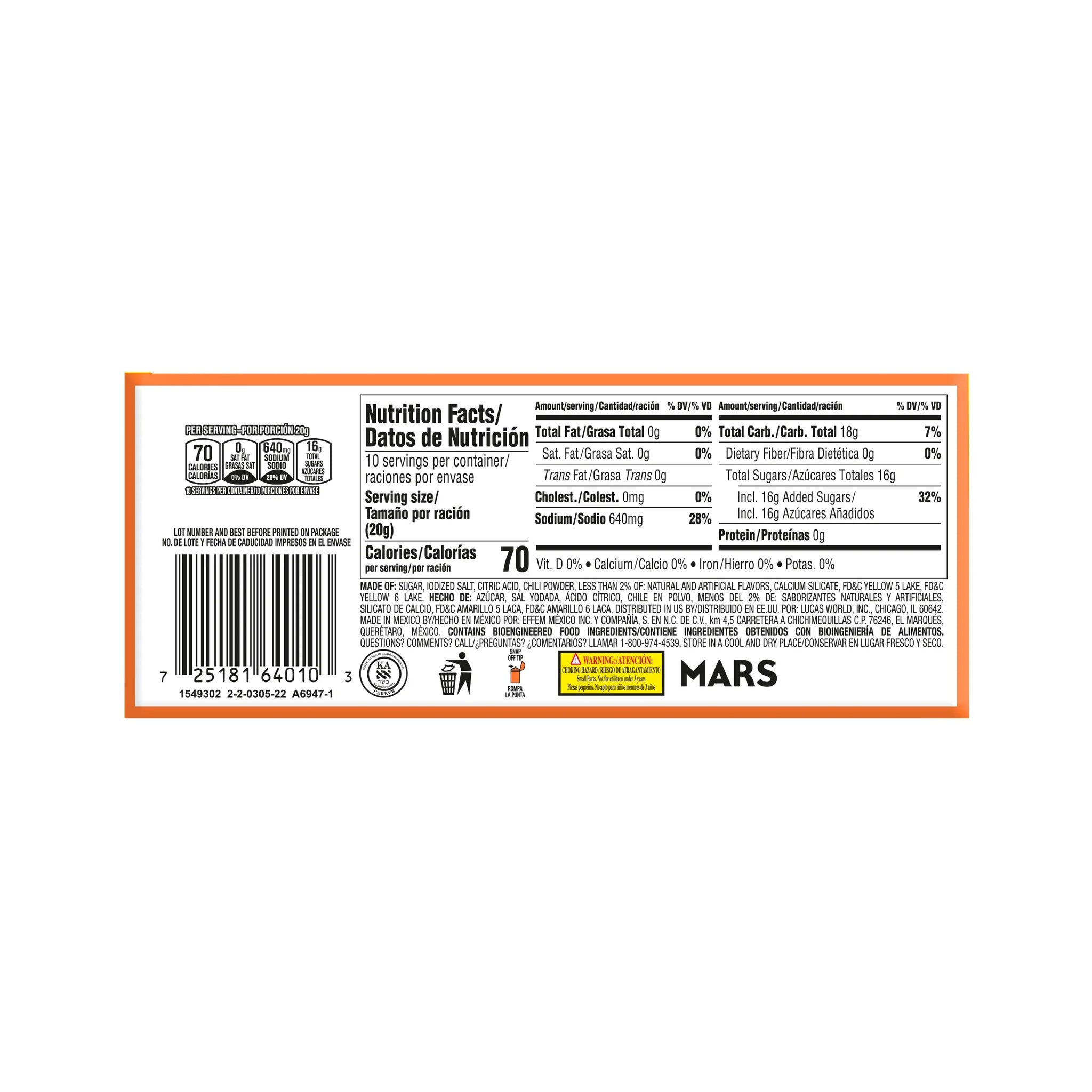 Authentic Mexican chili powder candy with a sweet and spicy mango flavorFeatures a unique powder format for a tangy taste experienceConvenient pack of 10 individual 0.71 oz packagesPerfect for adding a zesty kick to fruits, snacks, or beveragesA popular choice for parties, piñatas, and everyday enjoyment