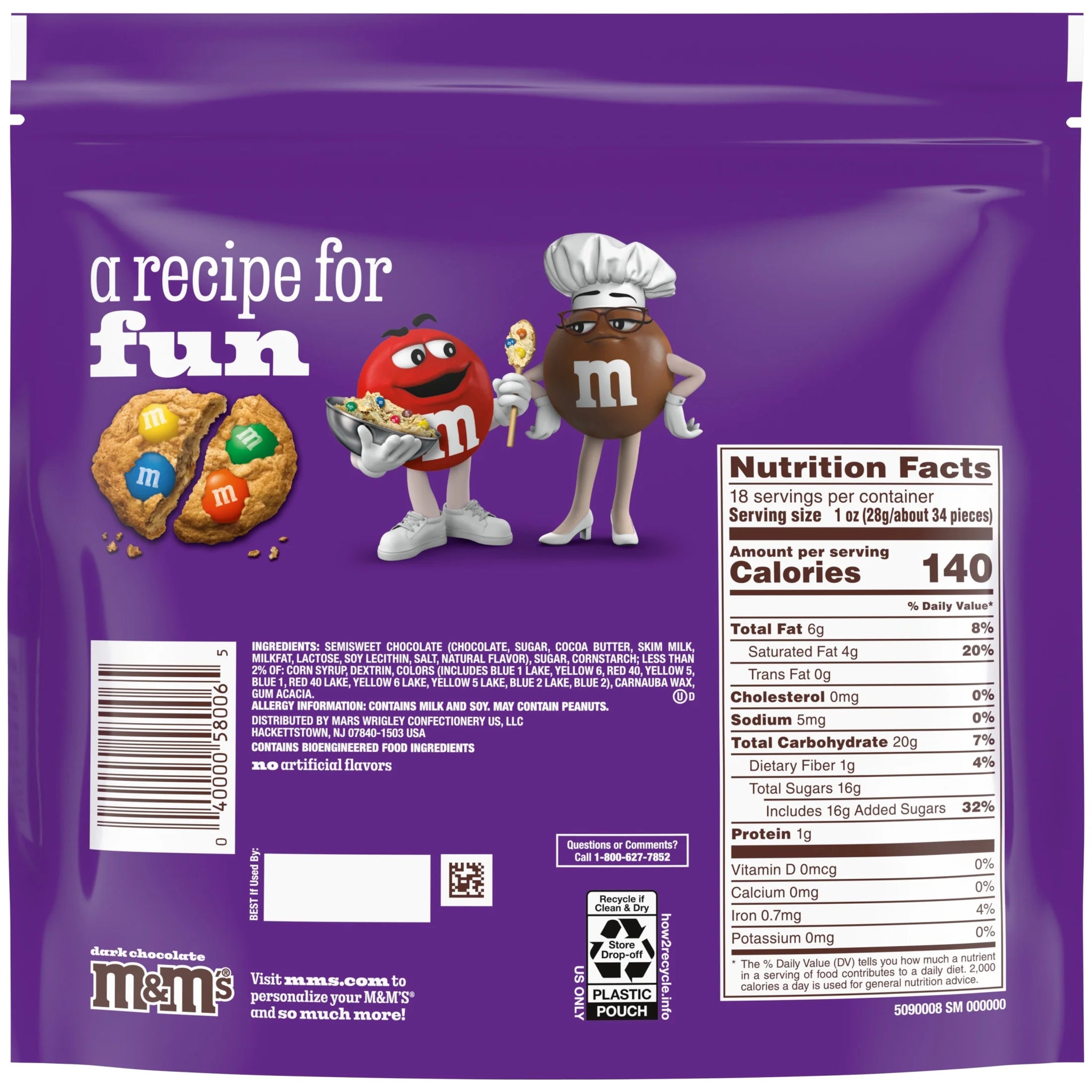 - Contains one (1) 18-ounce bag of M&M'S Dark Chocolate Candy
