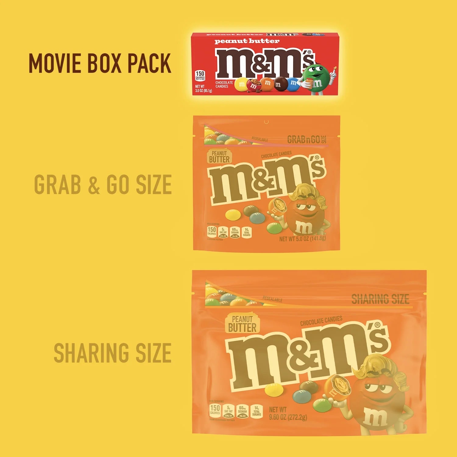 • This convenient, re-closeable pack of M&M'S Peanut Butter Milk Chocolate offers creamy peanut butter and milk chocolate in every colorful bite