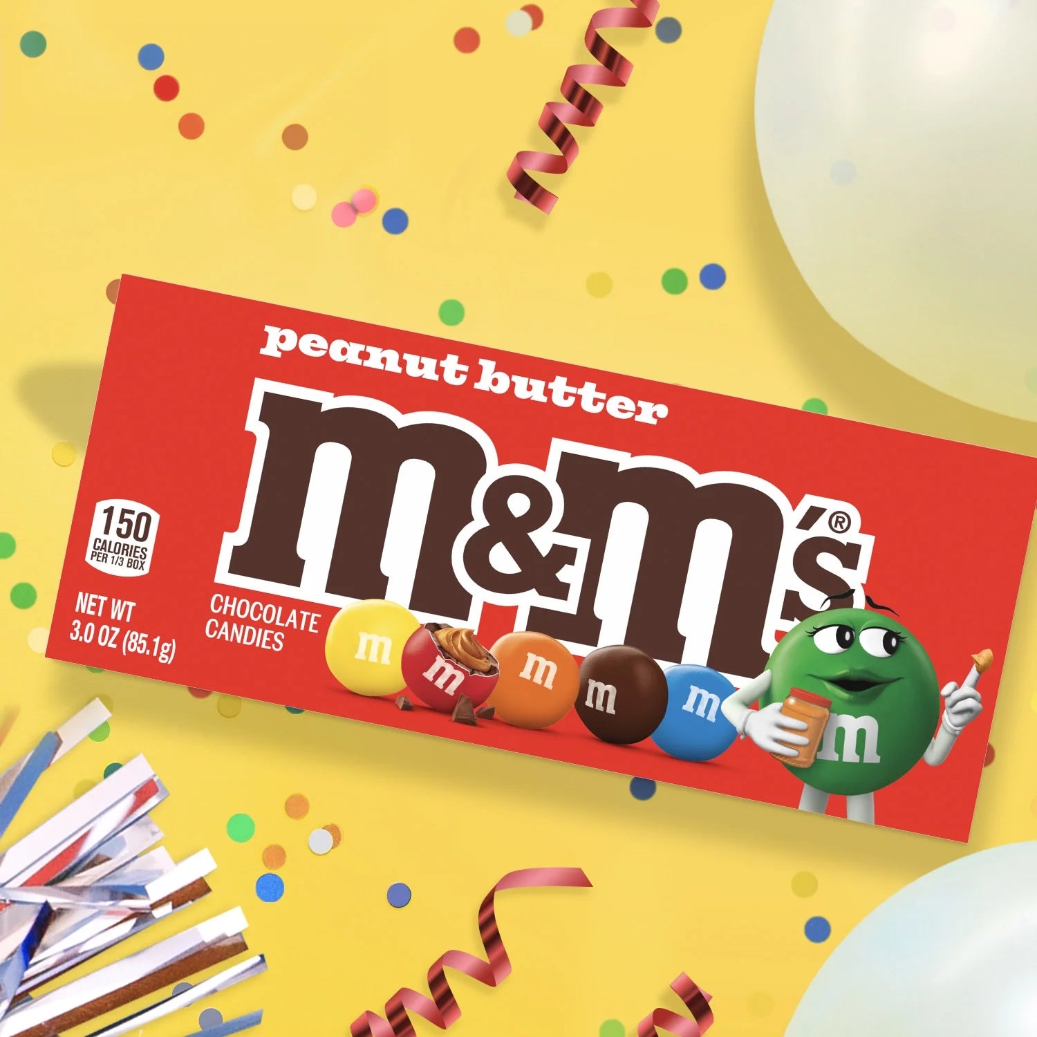 M&M'S Peanut Butter Chocolate Candy Box is the perfect treat for any occasion. The delicious bite-size chocolates that combine creamy peanut butter with smooth milk chocolate are a flavor experience that’s out of this world. Whether stocking up on Halloween candy, filling Christmas stockings, or looking for Easter candy to add to your basket, M&M'S Peanut Butter Candy is a must-have. This re-closeable Theater Box is also great for movie night essentials or office party supplies. With their colorful candy-coated shells, M&M'S Peanut Butter Chocolate Candy adds a fun, nutty twist to any candy bowl or dessert spread. Enjoy them as a sweet pick-me-up, share them at your next celebration, or enjoy a handful during your next cozy movie night. No matter the occasion, these peanut butter and chocolate candies are always a great choice. Order your box today!