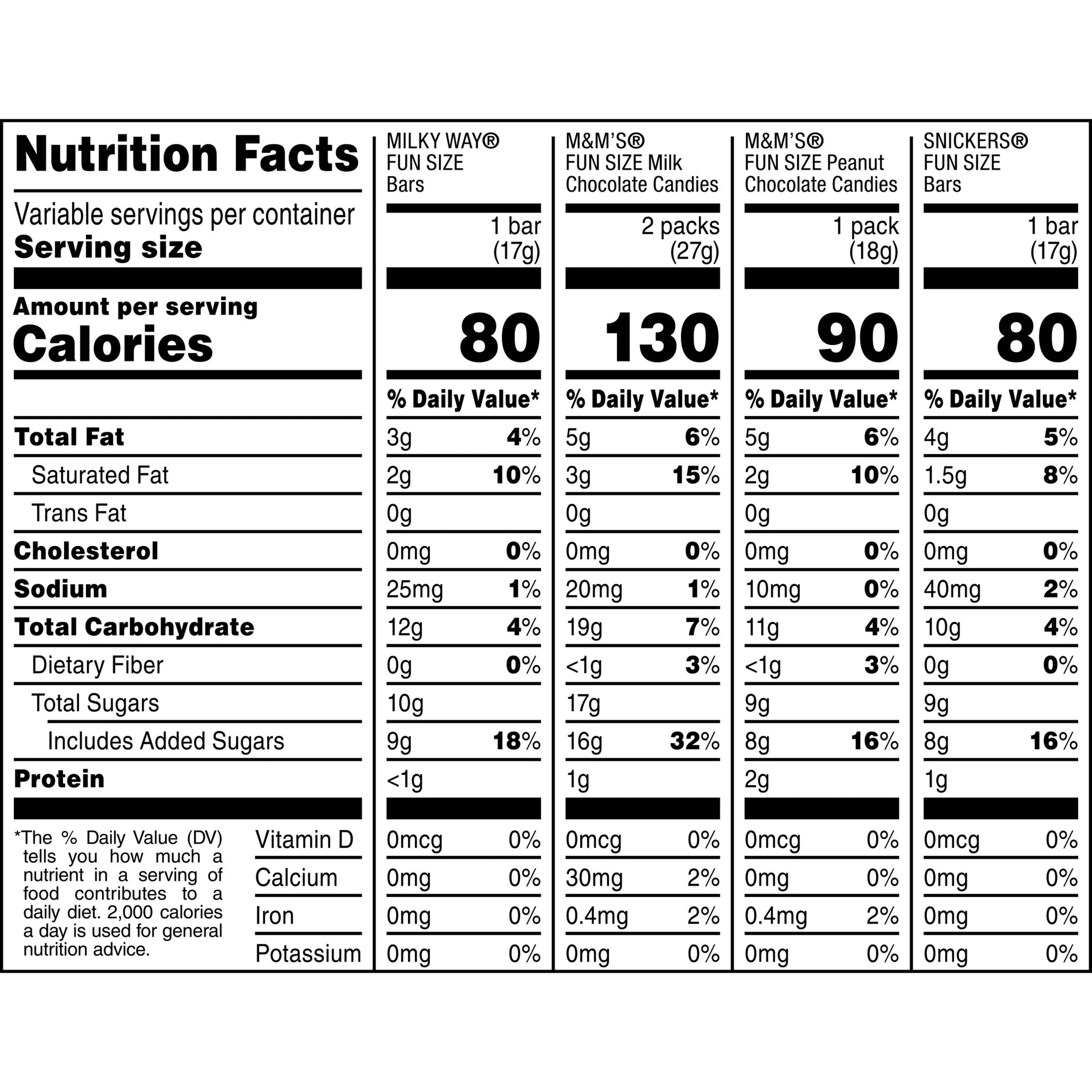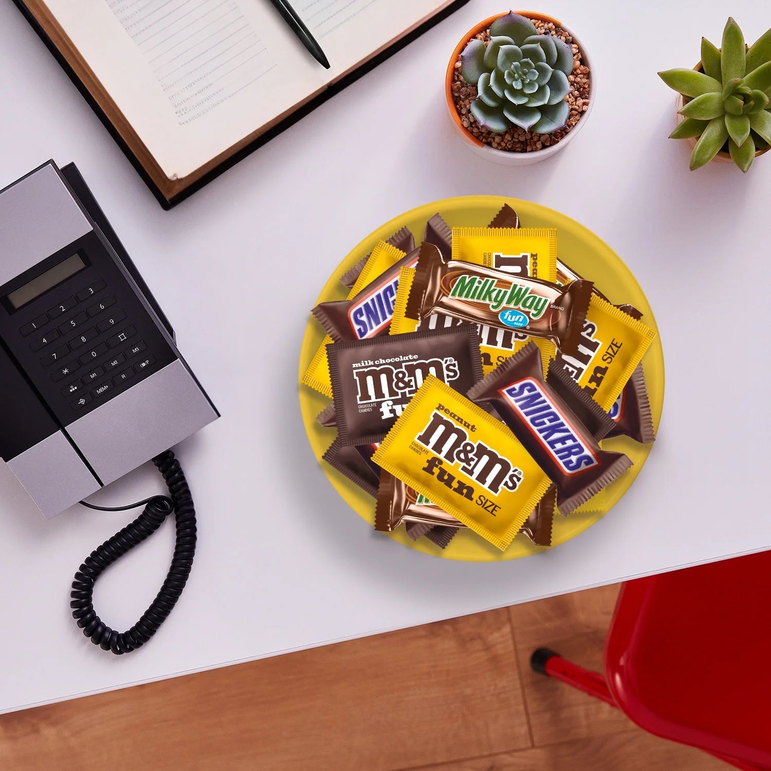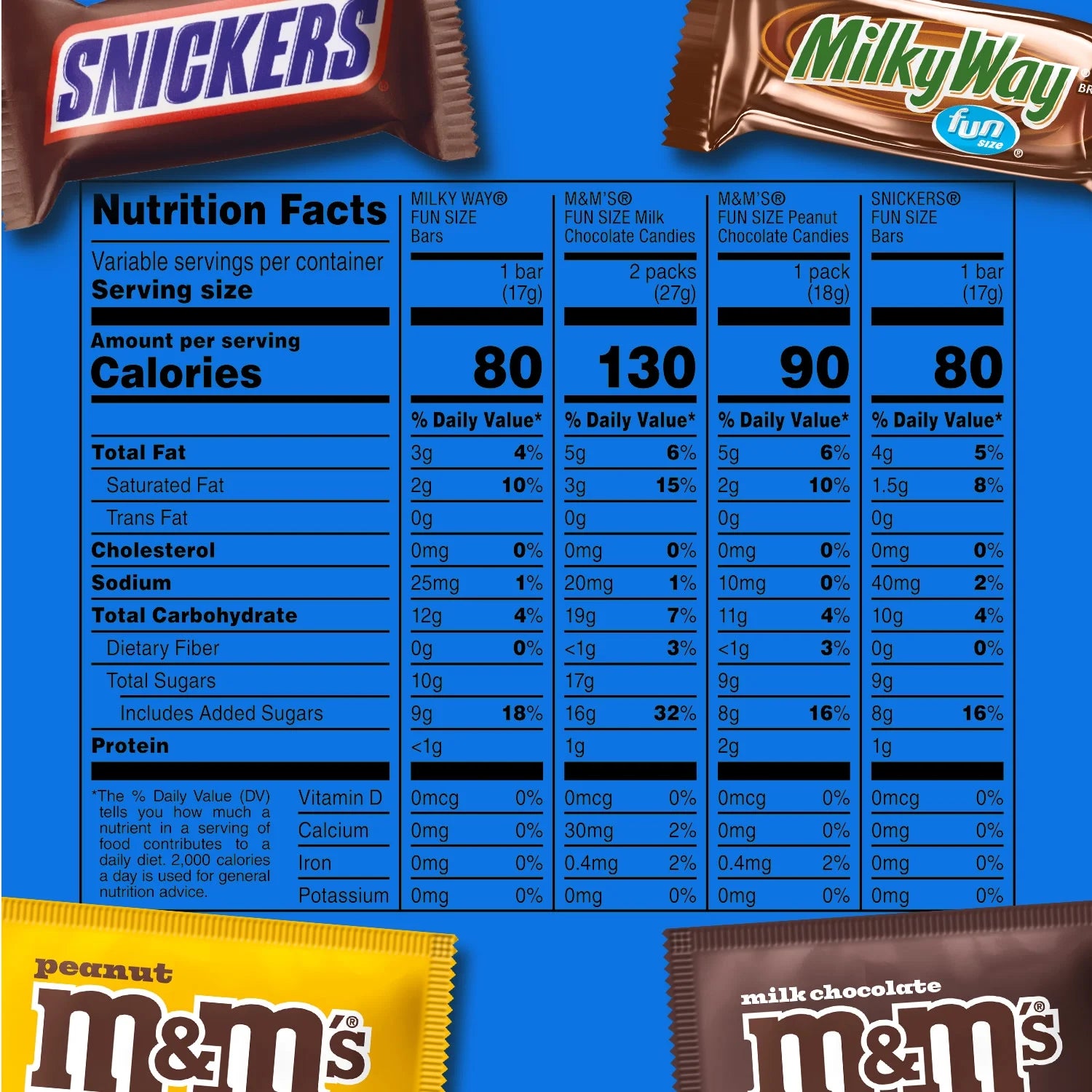 - Features a fun size assortment of SNICKERS Original, MILKY WAY, M&M'S Milk Chocolate, and M&M'S Peanut Chocolate Candy