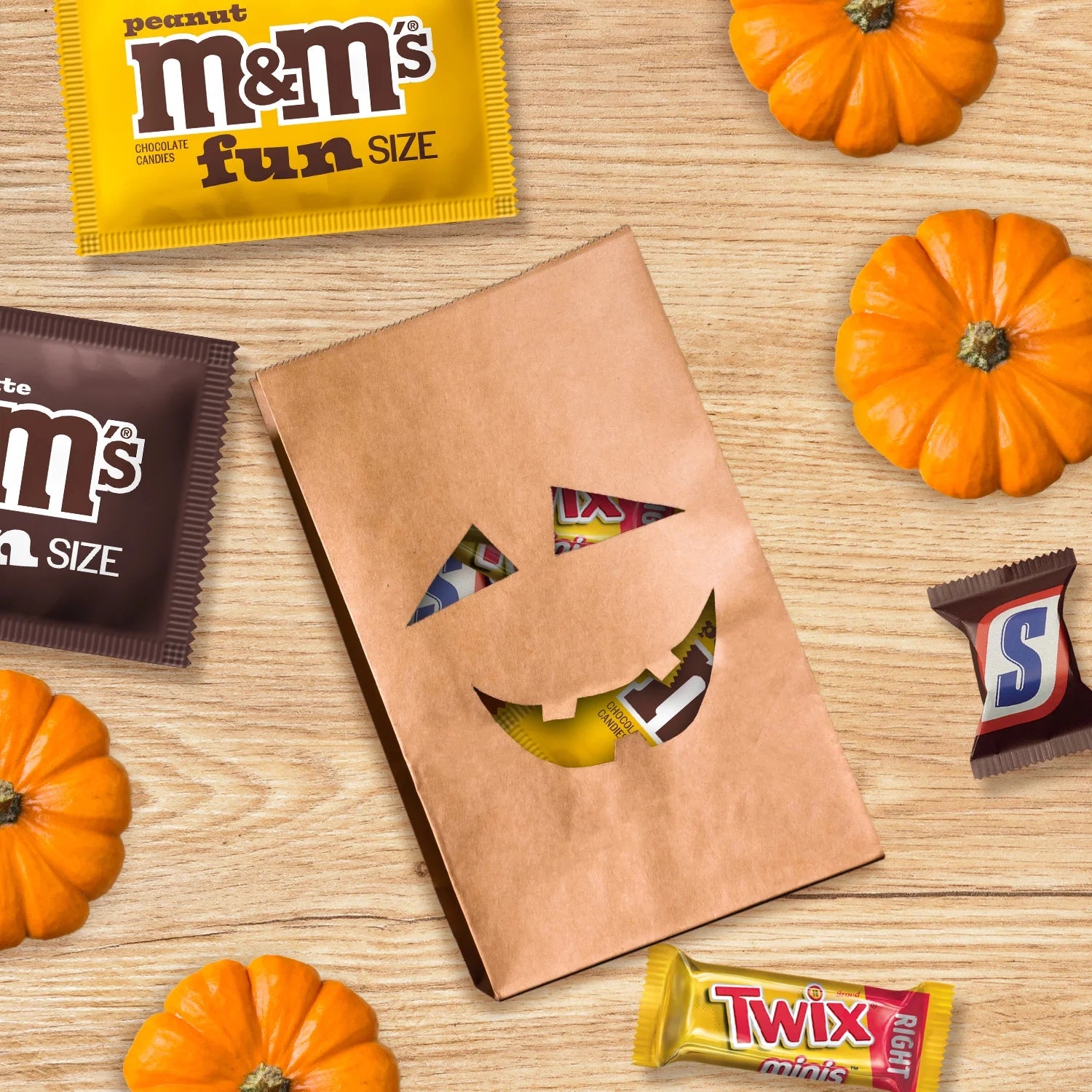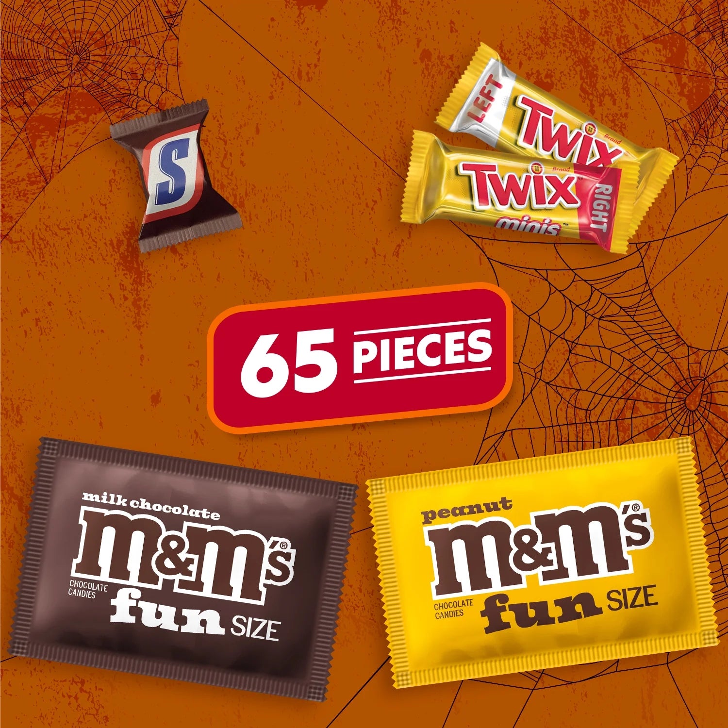 • Contains one (1) 25.67-ounce, 65-count bulk variety bag filled with M&M'S Milk Chocolate, M&M'S Peanut, SNICKERS & TWIX Fun Size and Minis Halloween Candy