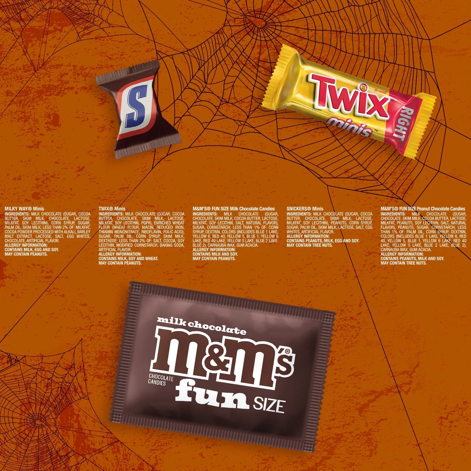 • Unwrap Halloween delight with every bite from this bewitching mix of M&M'S, SNICKERS, TWIX, and MILKY WAY milk chocolate candy